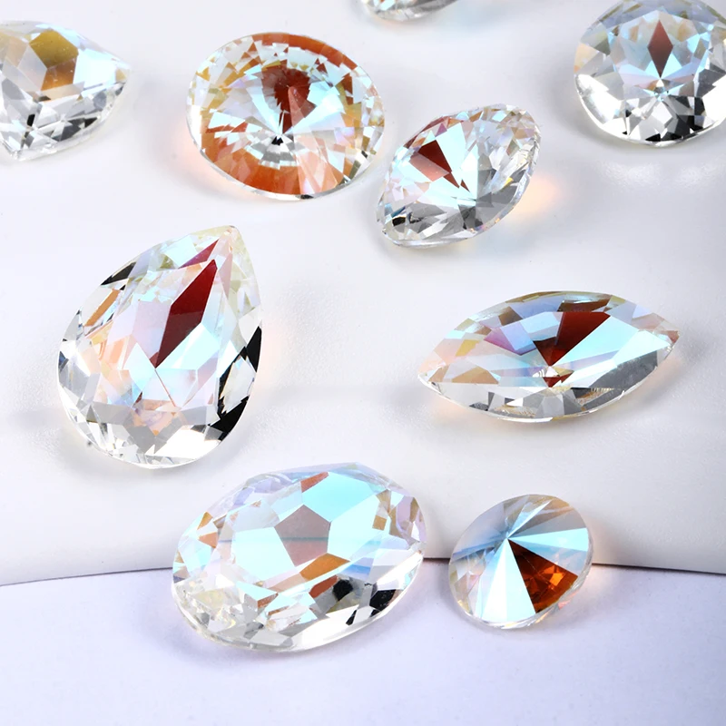 Прозрачные флуоресцентные Стразы K9, стеклянные стразы различных форм, все размеры, клей на клейкой основе, ювелирные аксессуары