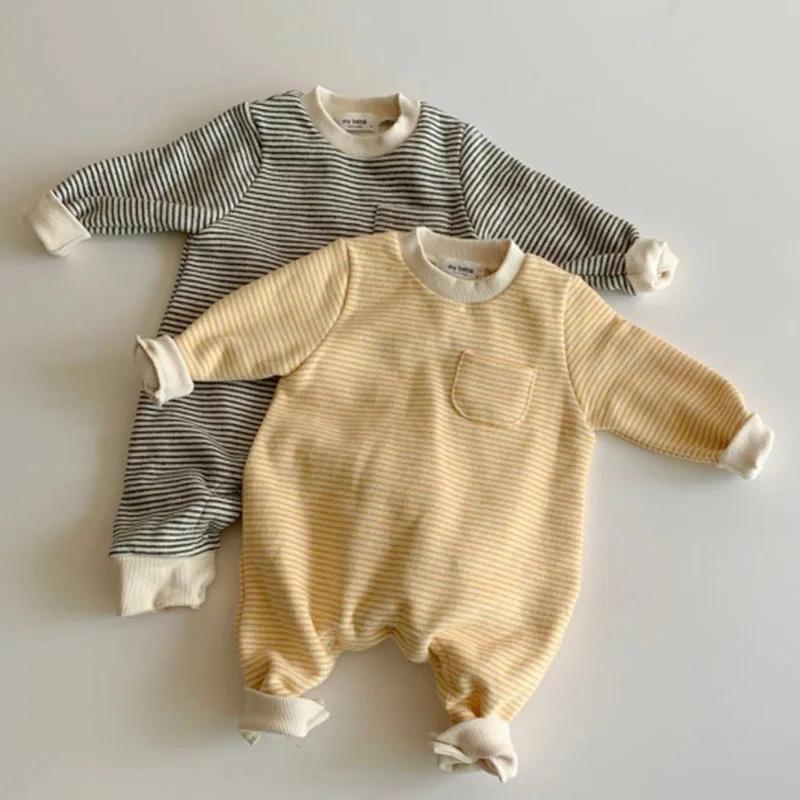 2021 осенне-зимний детский комбинезон в полоску, плюшевый модный простой утепленный комбинезон для отдыха, одежда для мальчиков и девочек