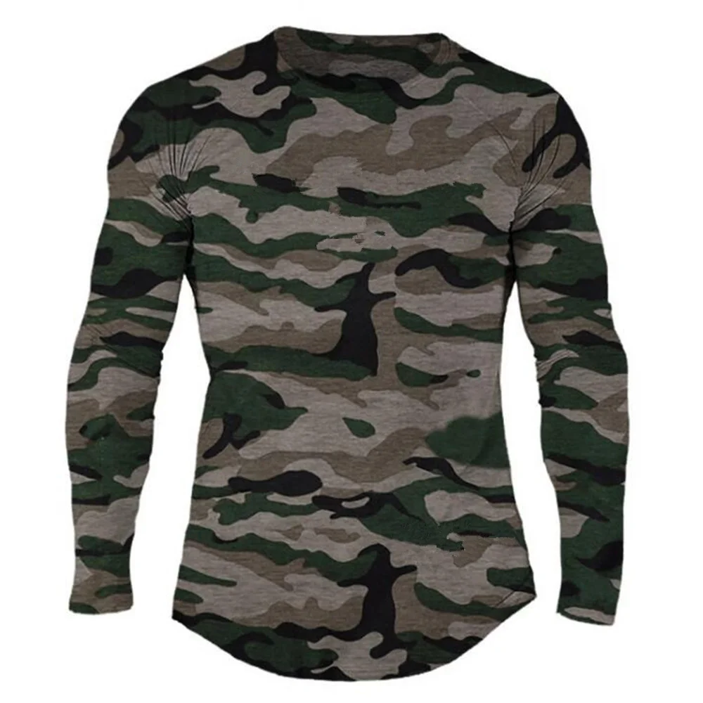 Спортивная футболка для фитнеса, мужская повседневная хлопковая футболка с длинным рукавом, Мужская камуфляжная футболка, осенняя Спортивная одежда для бега, одежда для тренировок
