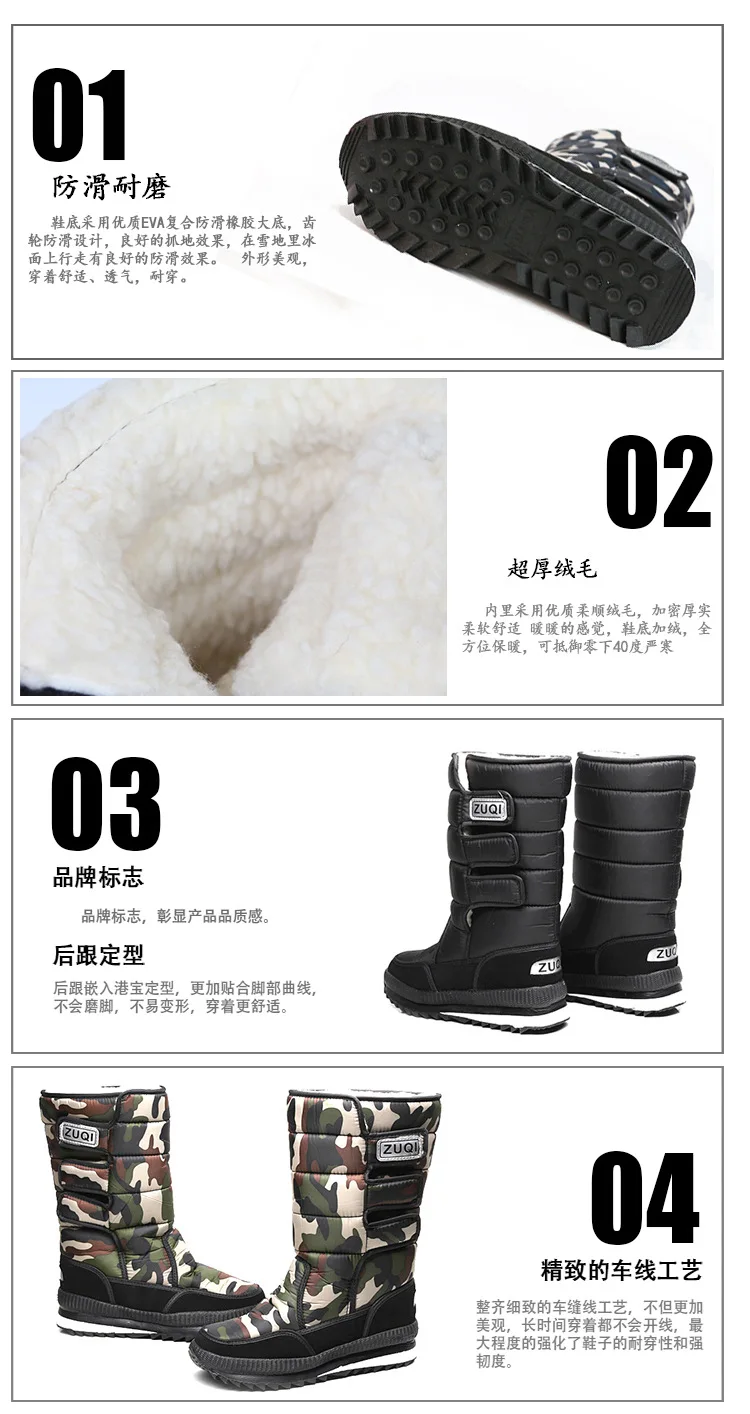 Мужские ботинки, зимняя водонепроницаемая обувь для снега с мехом, ...
