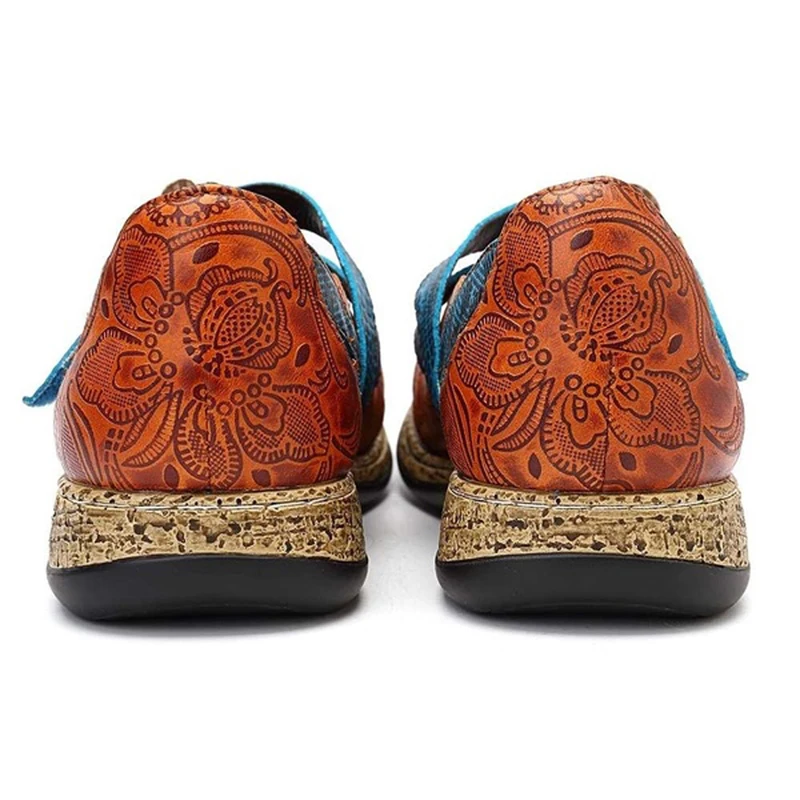 Женские богемные туфли на плоской подошве, винтажные кожаные туфли с цветочным принтом и мягкой подошвой, дизайнерские разноцветные Туфли с круглым носком на плоской подошве