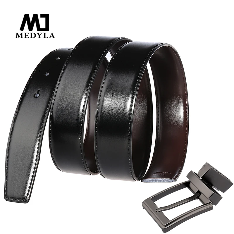 Мужской деловой ремень MEDYLA, двусторонний ремень из натуральной воловьей кожи, без пряжки, с вращающейся пряжкой, для самостоятельной сборки