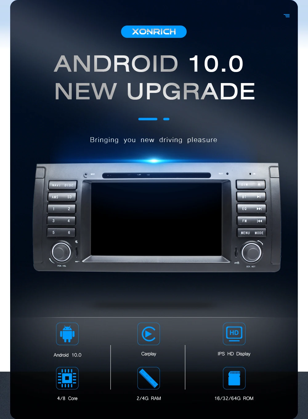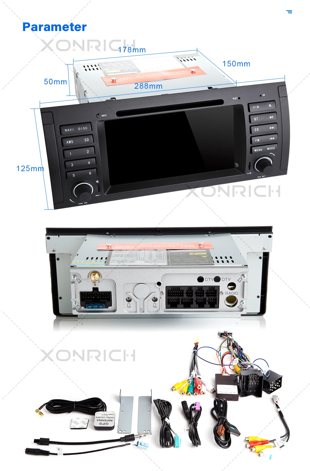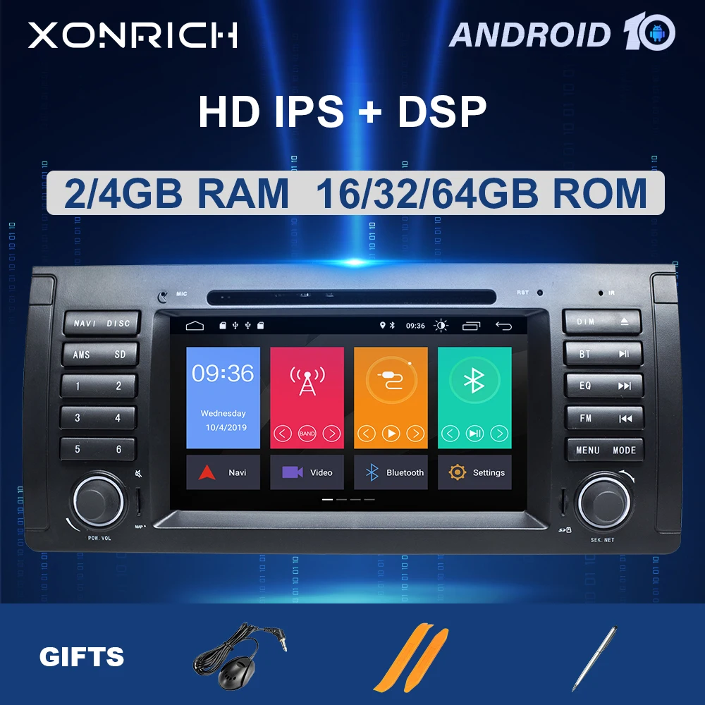Автомагнитола 2DIN, мультимедийный DVD-плеер с восьмиядерным процессором, IPS, DSP, 4 Гб, GPS-навигацией, Android 10 для BMW X5, E39