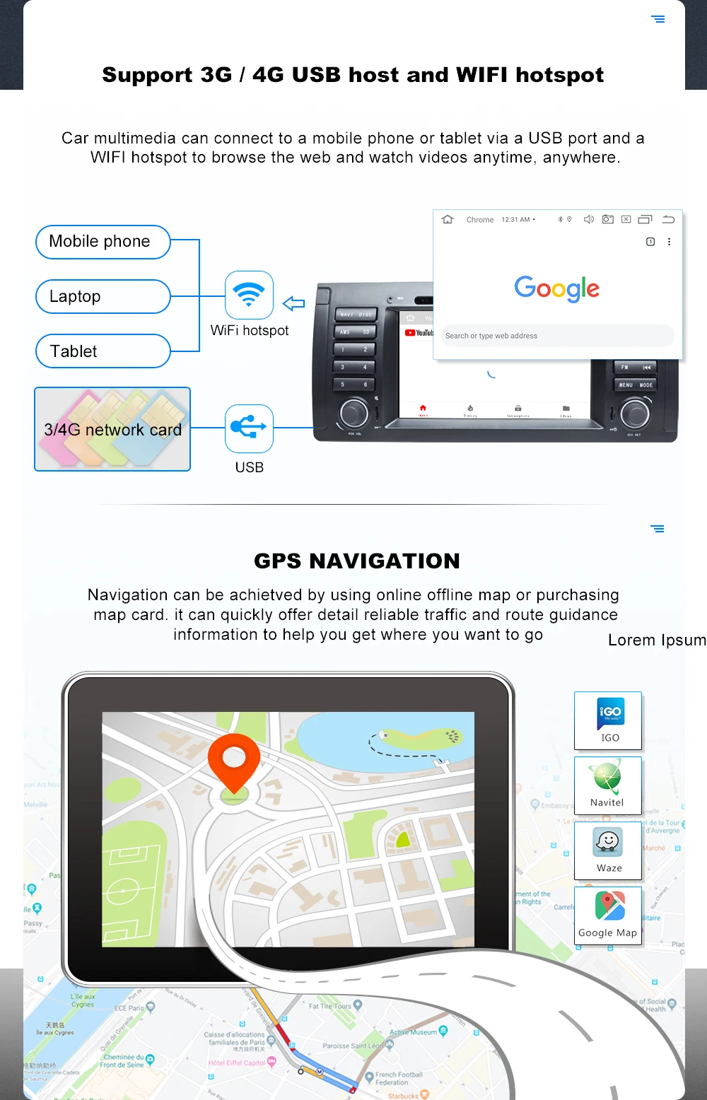 2. Если ваше Авто оригинальное радио-4,3 "или 7" экран с 12 контактов штекером, или вы имеете навигационный накопитель, расположенный в задней части вашего автомобиля, для установки необходимо заказать дополнительный Удлинительный кабель 6 м.