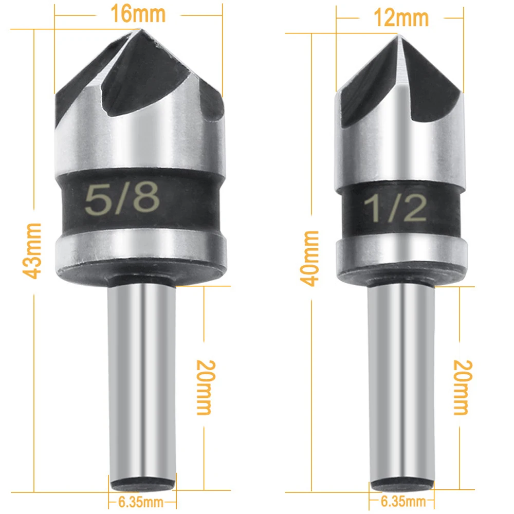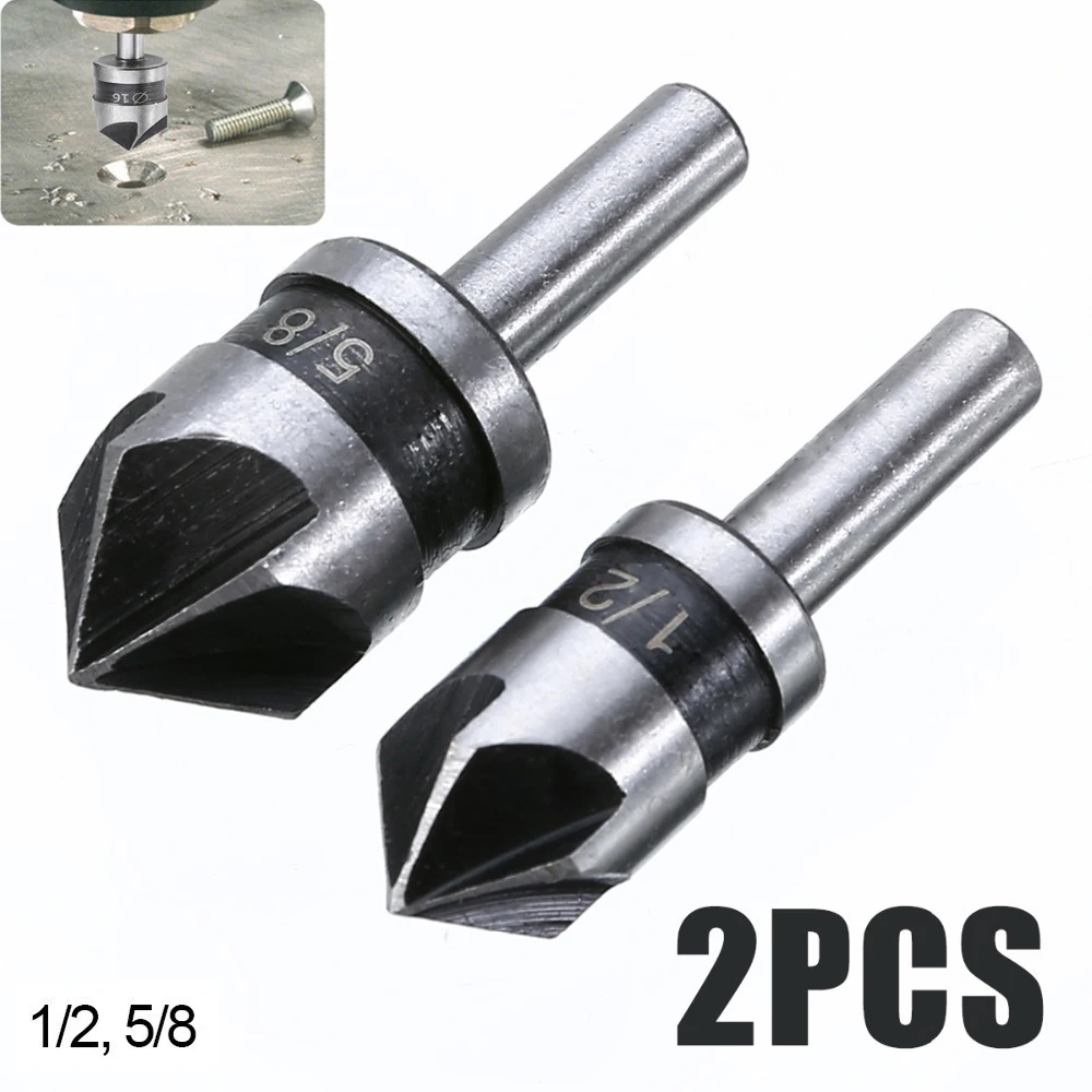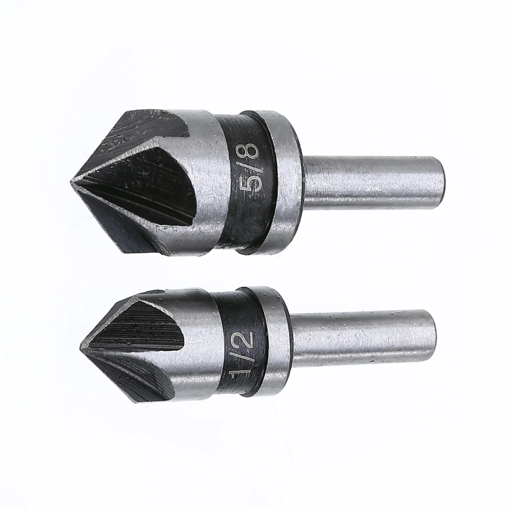 2 шт. 5 Флейта Зенковка сверло HSS 82 градусов точка угол резец фаски резец по дереву 14 "Круглый хвостовик для электроинструмента