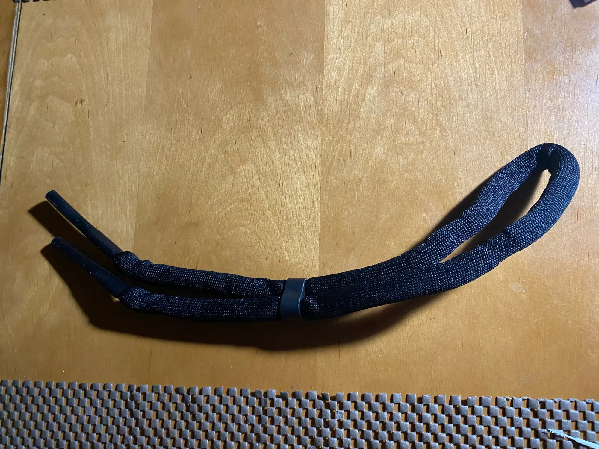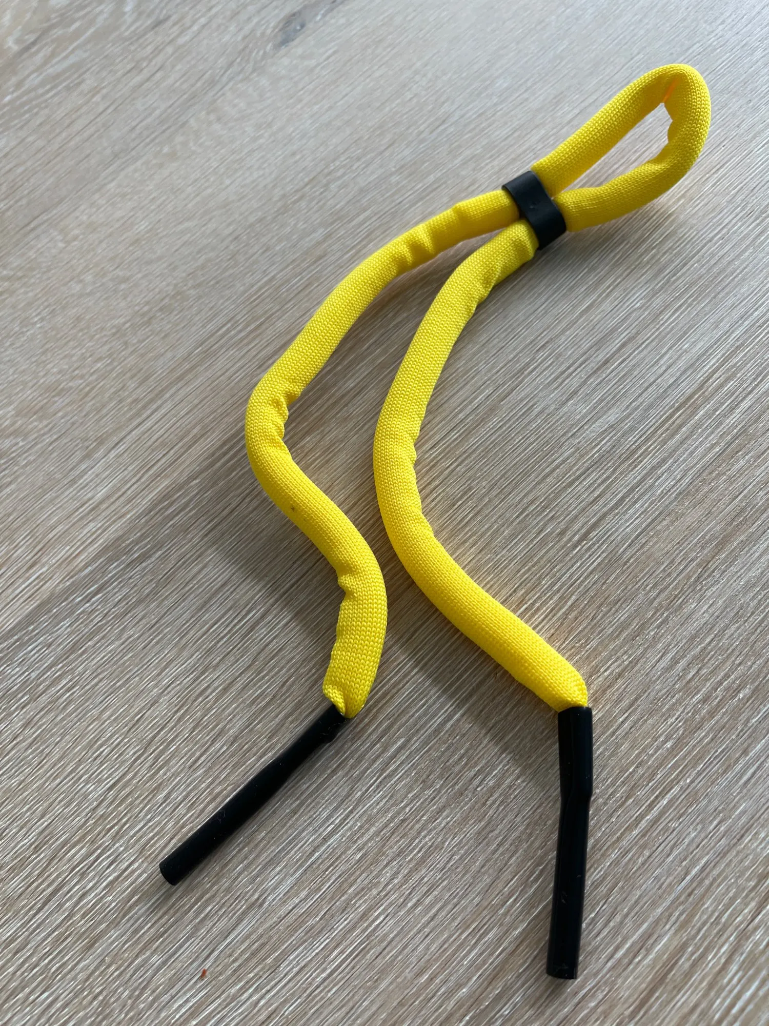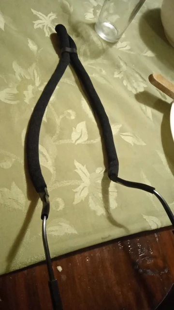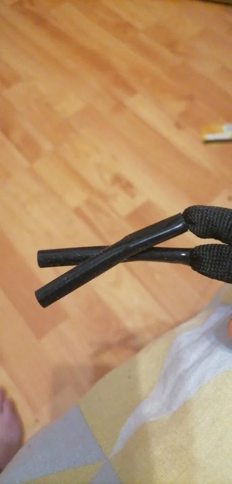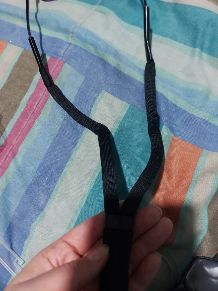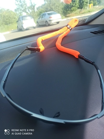 Доставка примерно 3 недели, шнурок хороший но есть минус, на конце резинка широкая для моих дужек, при повороте головы переодически снимается то с левой то с правой дужки. Хотел нагреть резинку термофеном и сжать чтобы стала уже, не получается. Теперь надо думать как это сделать.