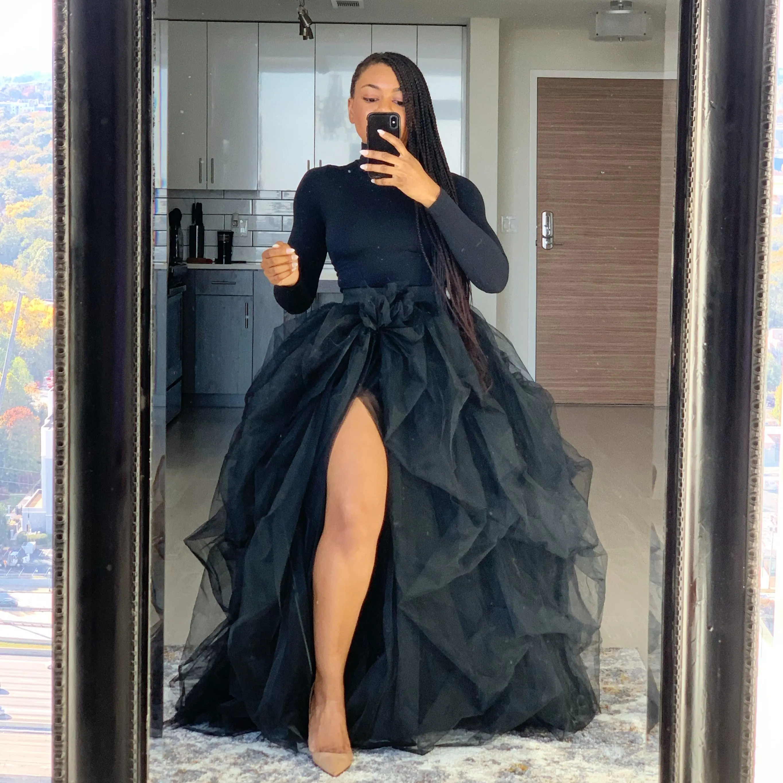 Модная женская юбка-пачка трапециевидной формы из прозрачного тюля с длинным юбка для свадебной вечеринки, юбка-макси для выпускного вечера, черная, синяя, красная, белая
