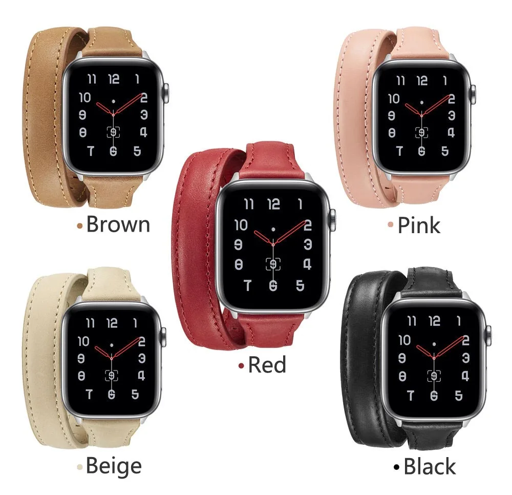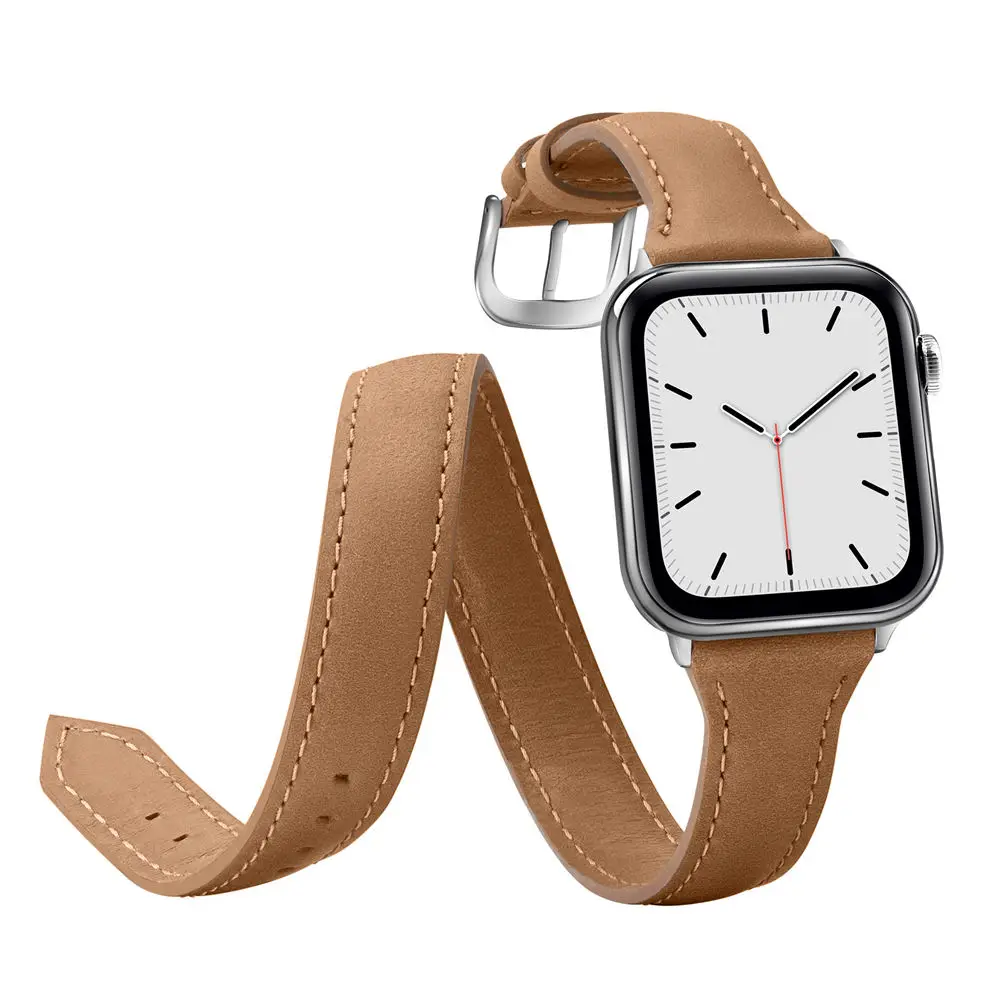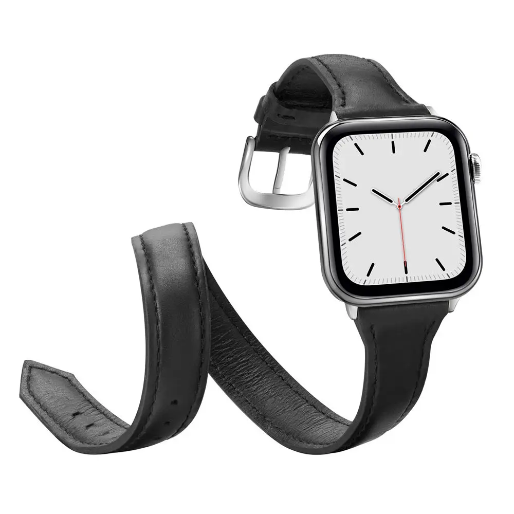 Ремешок для Apple Watch Double Tour Band Series 1 2 3 4 5, тонкий браслет из натуральной кожи для iWatch 38 мм 40 мм 42 мм 44 мм