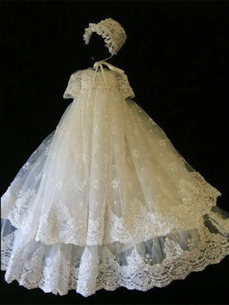 Платье на крестины для новорожденных девочек, кружевное платье принцессы с аппликацией для крещения, одежда для малышей на 1 год, день рождения