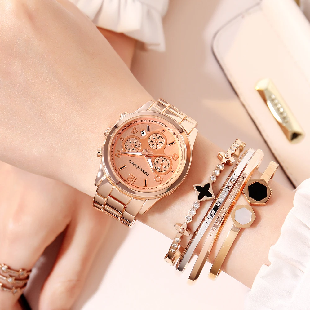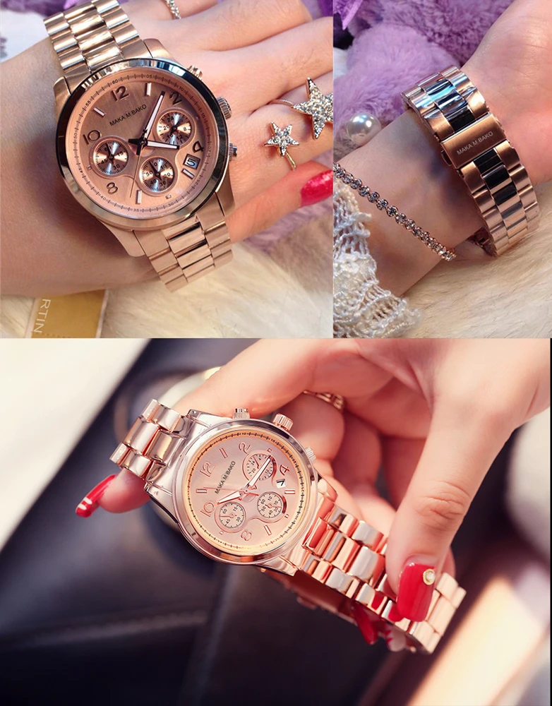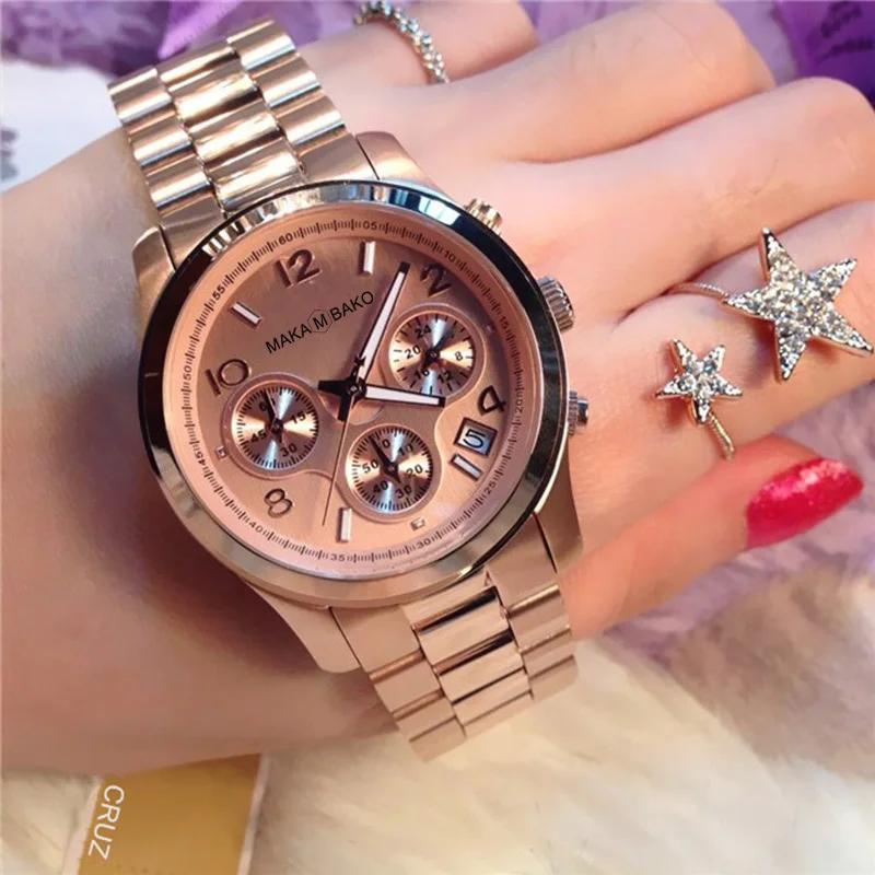 Оригинальные Классические кварцевые наручные часы для женщин, розовые красные женские часы, часы из нержавеющей стали, повседневные водонепроницаемые женские часы
