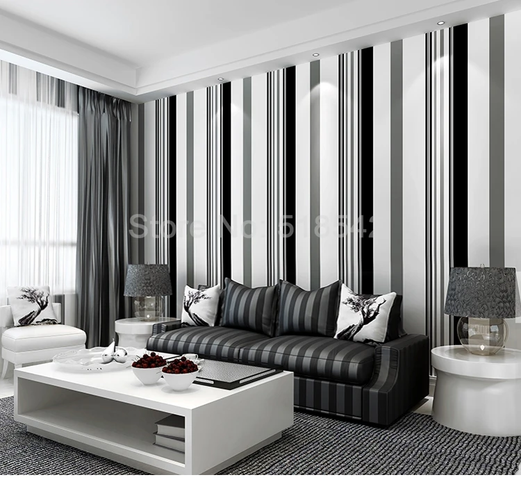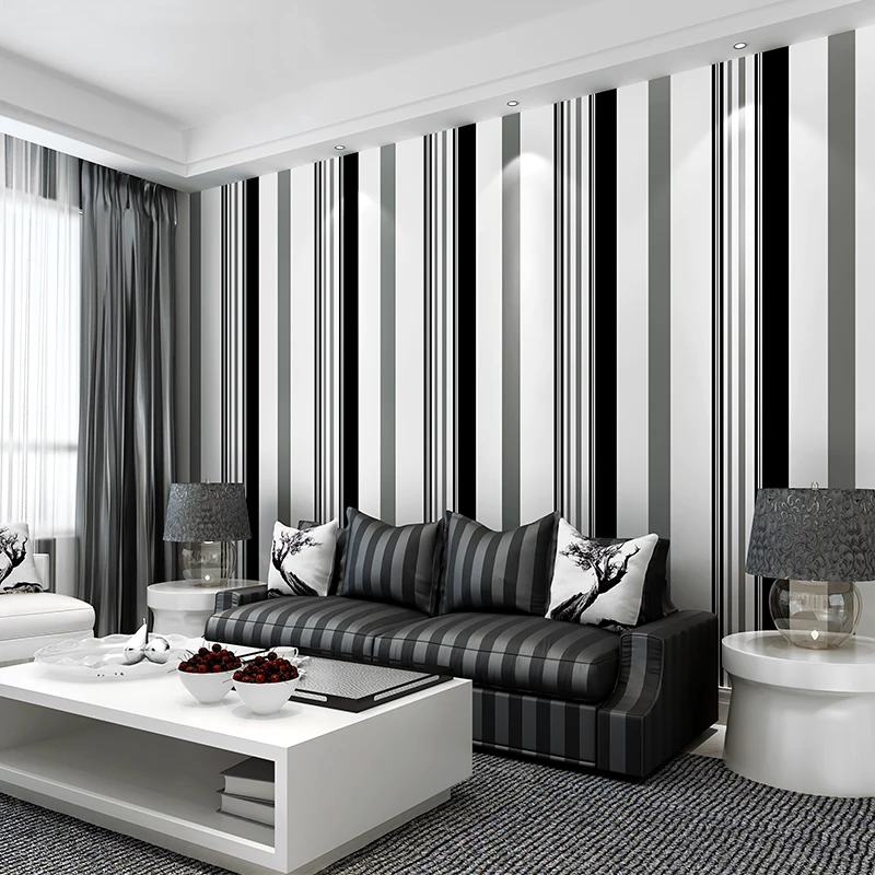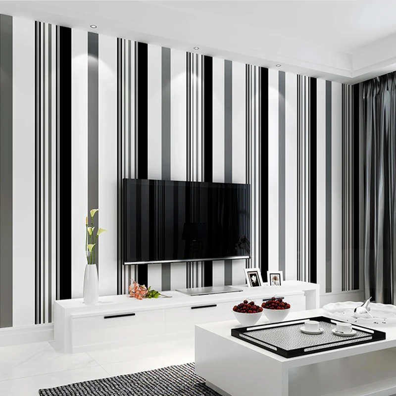 Современные черные белые серые полосатые обои для ресторана, гостиной, дивана, ТВ, фона, стены, домашний декор, простые бумажные обои