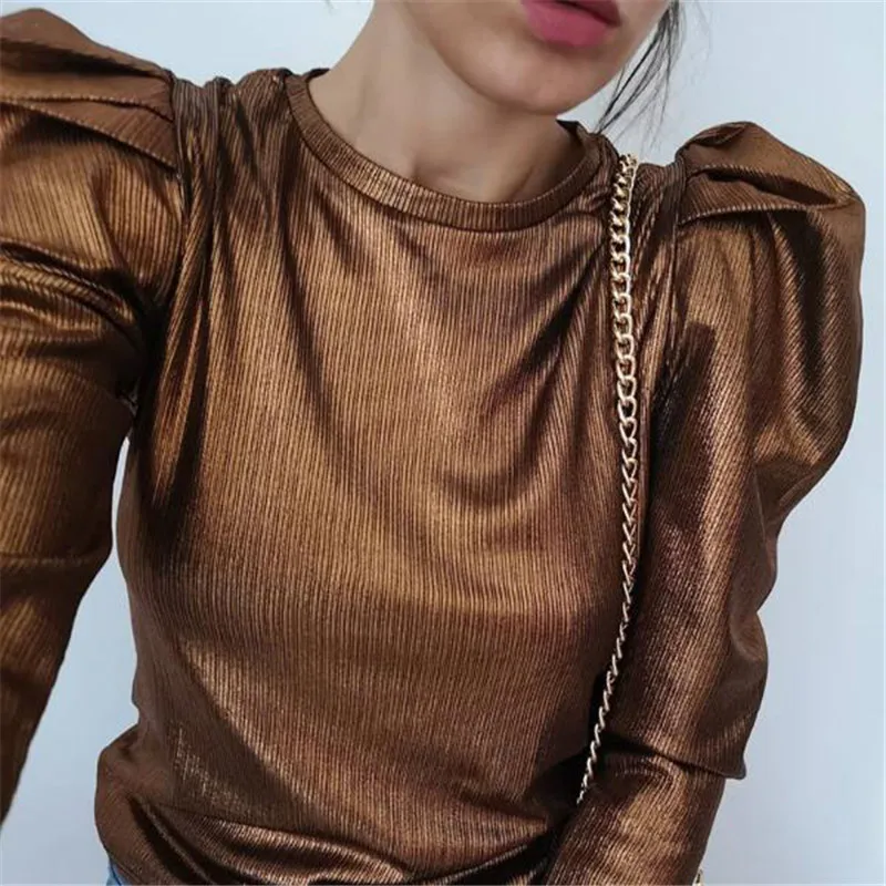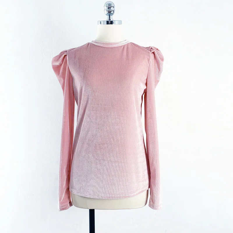Yuqung Для женщин вельветовое платье с буффами на рукавах, блузка и Топ Элегантный круглая горловина вечерние Клубные женские топы высокая уличная розовый