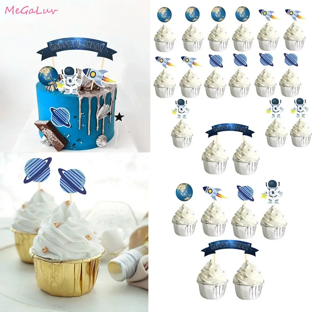 Тематика космонавта, кекс, ракета, спутниковый торт, флаги, вечерние товары на день рождения, украшения для торта, вечерние украшения в космическом пространстве
