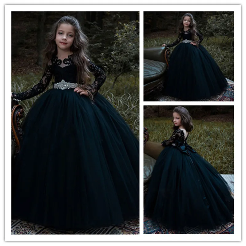Детское платье принцессы, черное кружевное платье с рукавом 34, Hi-...