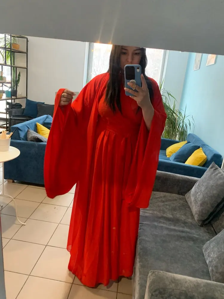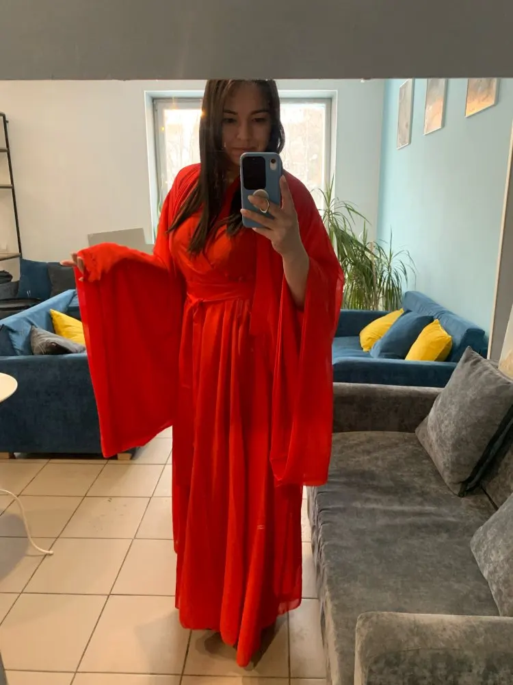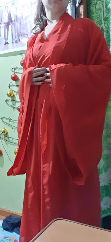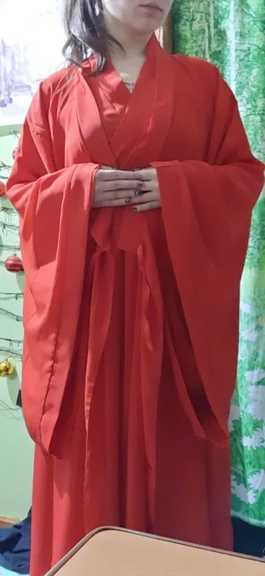 Потрясающе красивое ханьфу. село идеально по фигуре, ткань приятная, только липнет, нужно много антистатика. но в общем прекрасный фасон и яркий цвет, мне всё нравится. спасибо большое
