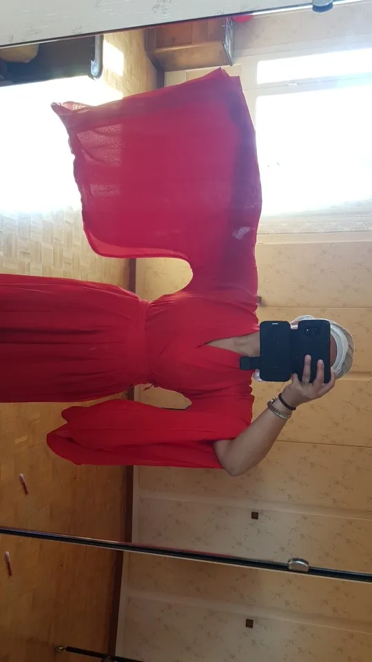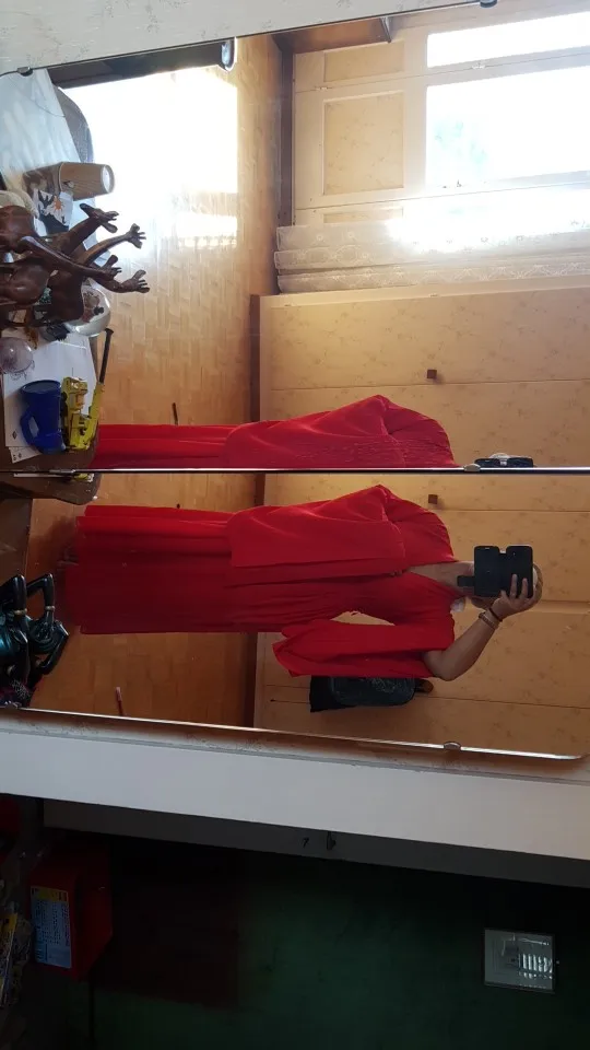 Платье обалденное, боялась, что придёт кот в мешке, но все обошлось. На фото не видно, но в жизни платье насыщенного красного цвета, материал синтетика, но качество высокое, в носке приятное к телу. Магазин советую к покупкам