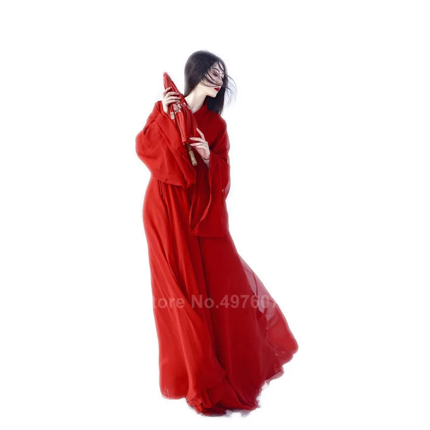 Восточное традиционное китайское платье ханьфу для женщин, однотонные красные шифоновые костюмы для народных танцев, Женский винтажный костюм Тан, размера плюс