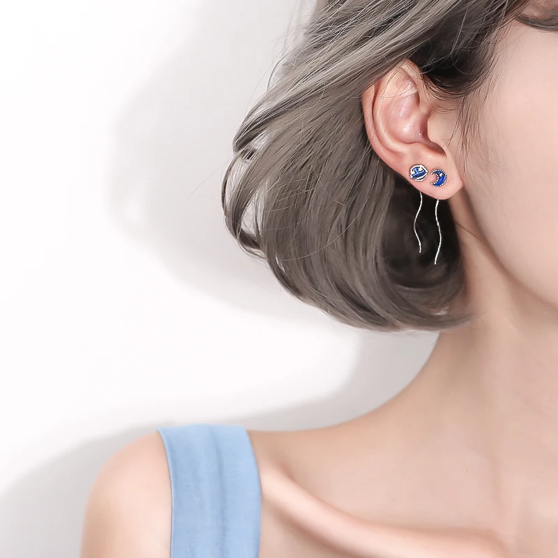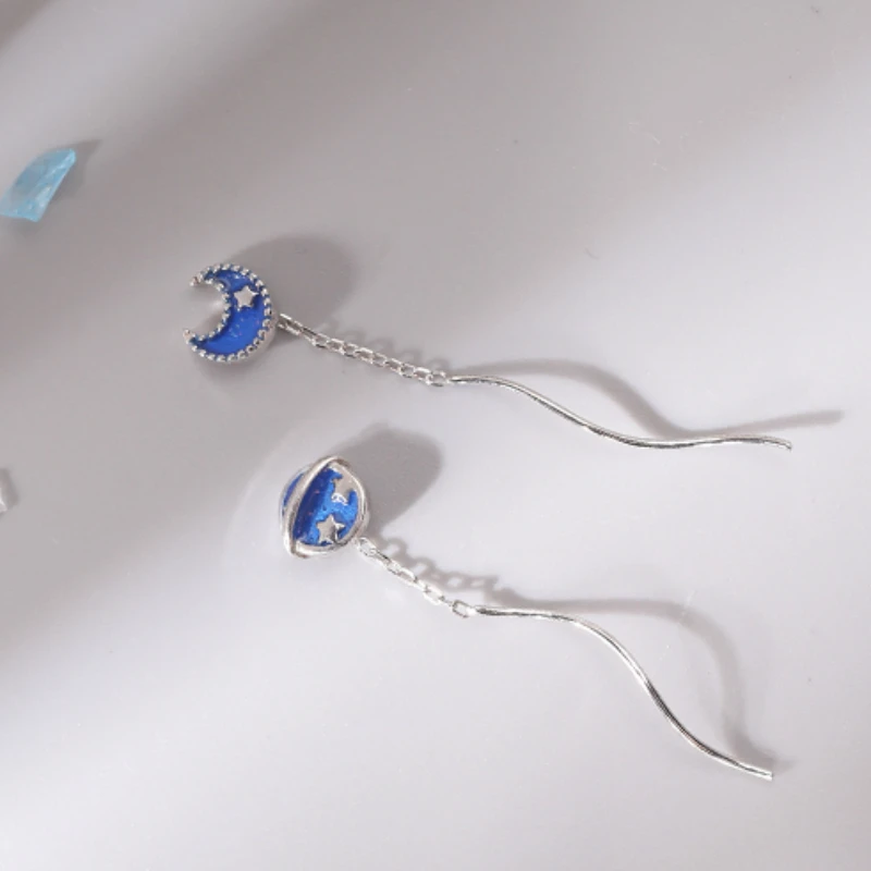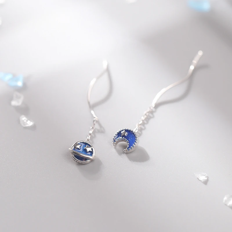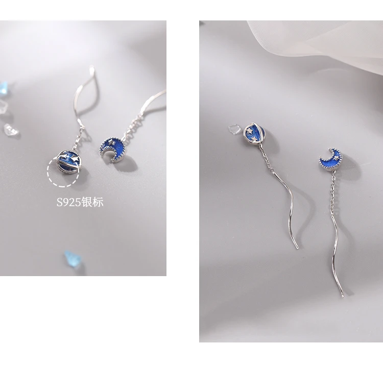 Серьги-подвески серебристого цвета со сверкающими луной планетой галактикой для женщин и девушек, вечерняя бижутерия, хороший подарок на день рождения