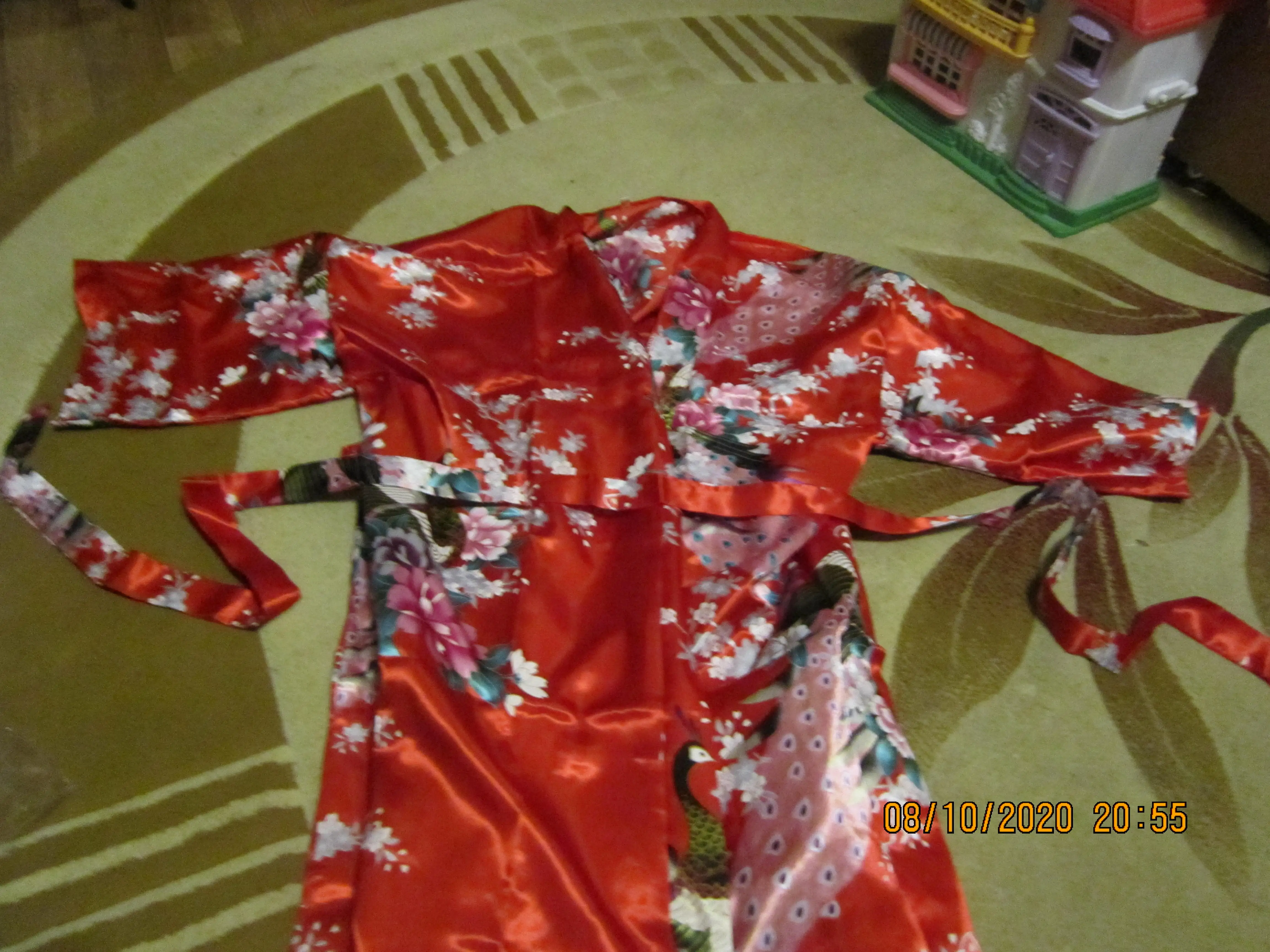 Заказ получен. Быстрая отправка и доставка товара. Отслеживается. Халат заказывали 5XL боялись что не налезет, но нет халат отлично подошел. Сшито хорошо, нитки не торчат. Приятный, гладкий. Спасибо!