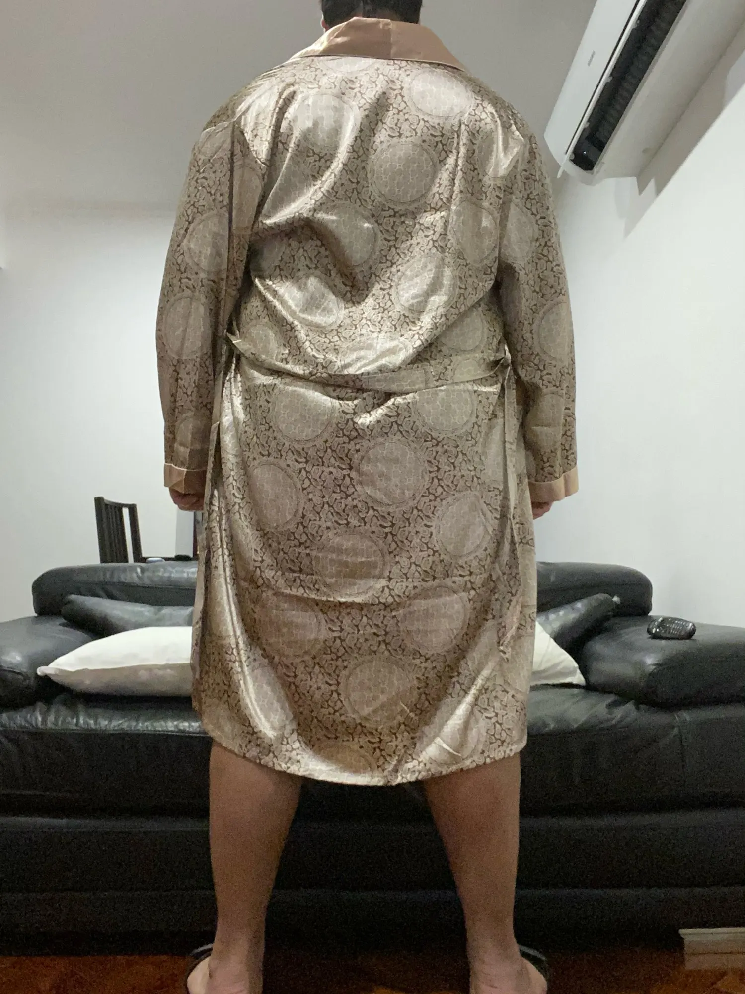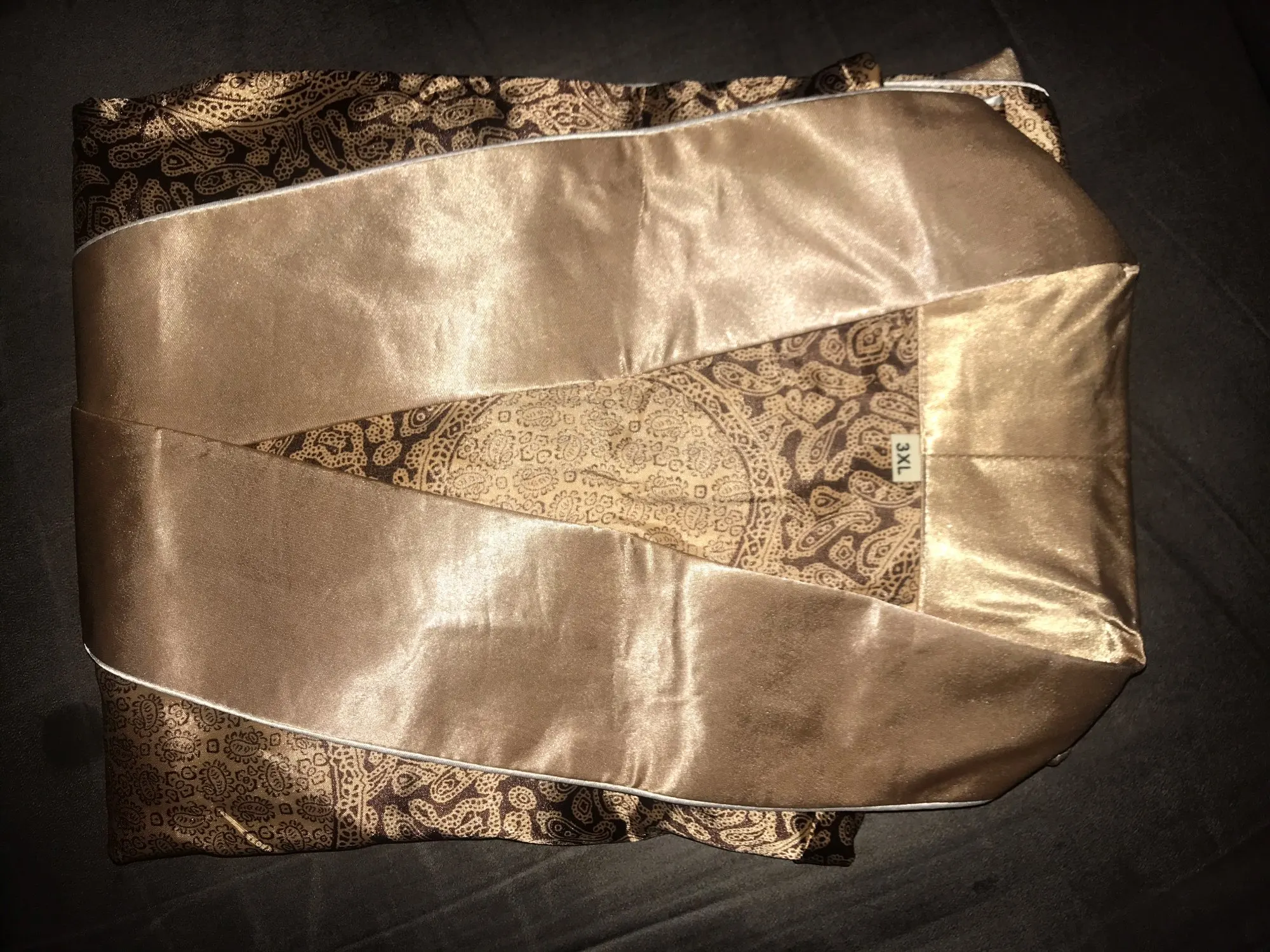 Халат Мужской Атласный, с золотистым принтом, 3XL, 4XL, 5XL, размера плюс