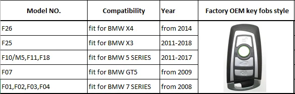 Этот комплект pke совместим с автомобилями BMW с моделями ниже: