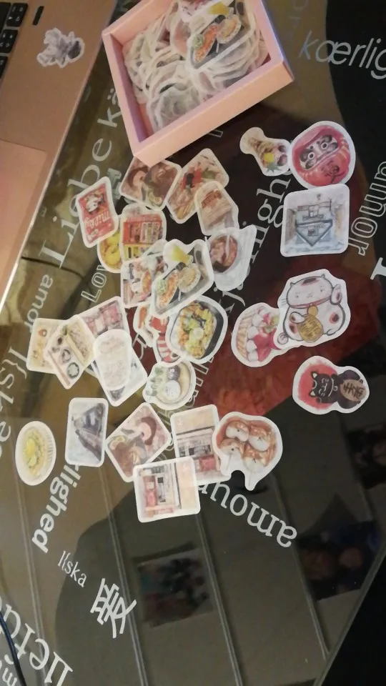 Пришли очень быстро. В отдельной коробочке, что выглядит очень качественно и чудесно. Разве что, я не заметила, что они бумажные и просвечивают как тонкая бумага :( На ноутбуке почти не видны, да и не думаю, что долго продержатся, но для скрапбукинга подойдёт просто супер! В сравнении с другими наклейками на ноутбуке выглядят, будто бы грязные :(