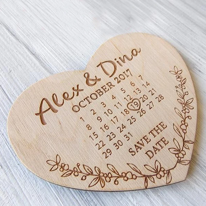 Персонализированное деревянное сердце сохранить дату магнит Свадебное приглашение свадебные подарки для гостей