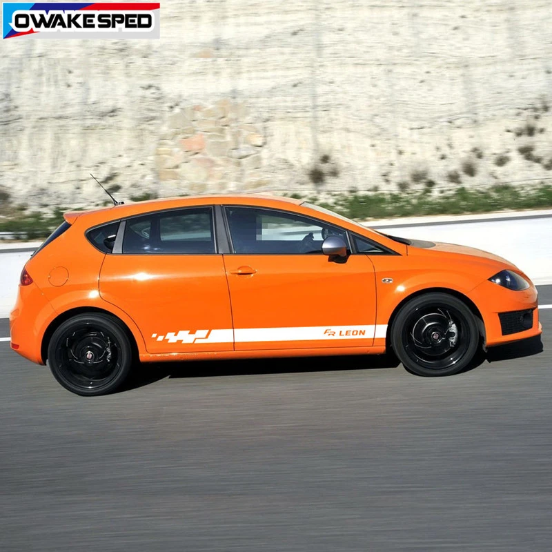 Двусторонние гоночные полосы для Seat Leon FR TGI ST SC TSI Cupra, наклейки на дверь автомобиля, юбка, спортивный стиль, украшение для тела