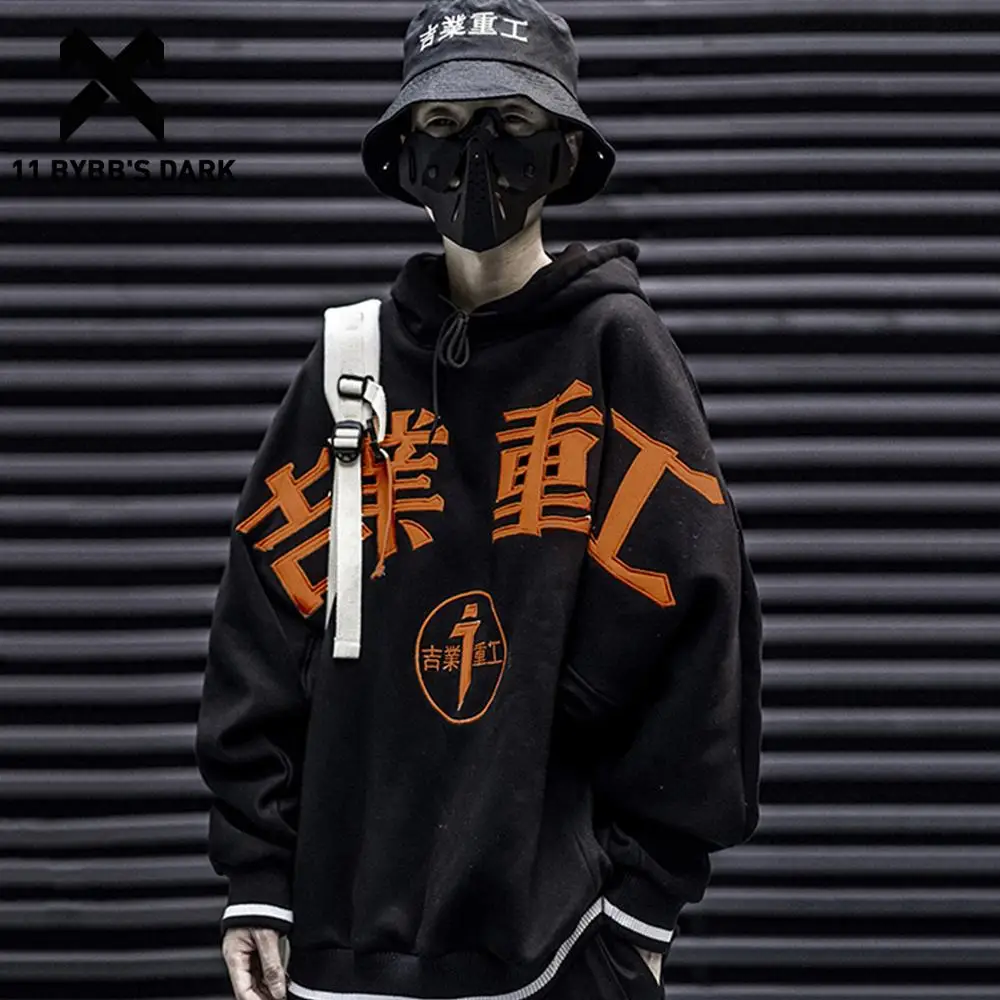 Мужские плотные толстовки с капюшоном 11 BYBB'S DARK в стиле хип-хоп с китайским принтом, уличная одежда Харадзюку на осень 2019