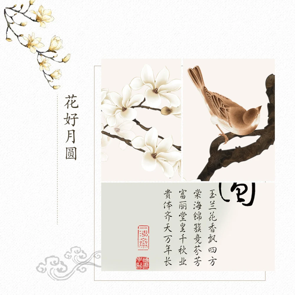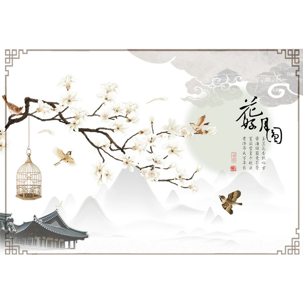 Полнолунный цветок, птицы, наклейка на стену, домашняя гостиная, на...