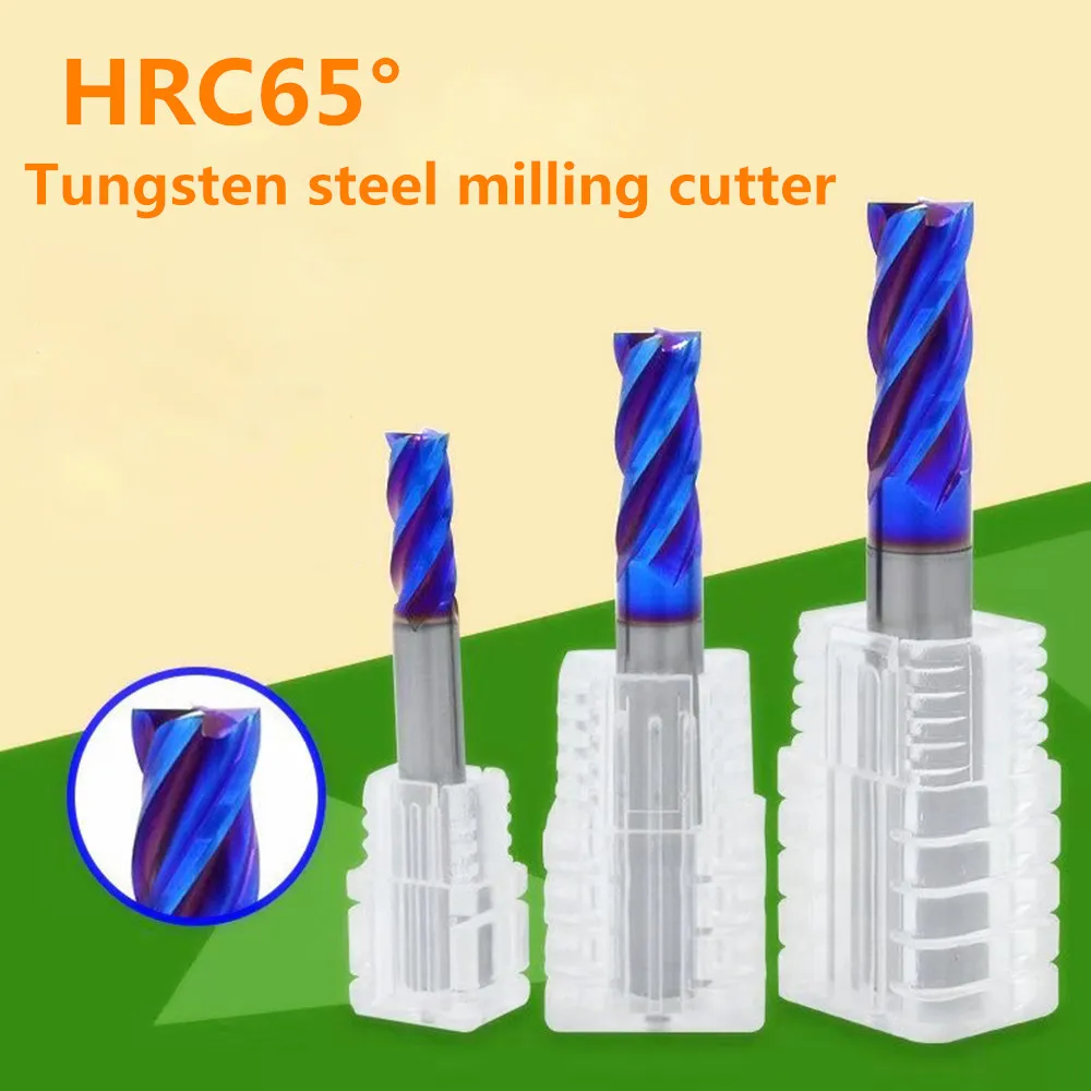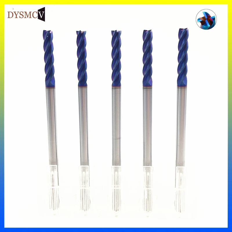 Фреза Концевая HRC65, 4 мм, 4 канавки, D4 * 15*75, 75 мм, длинные концевые фрезы с прямым тонким хвостовиком, с покрытием nACo-Blue, 1 шт.