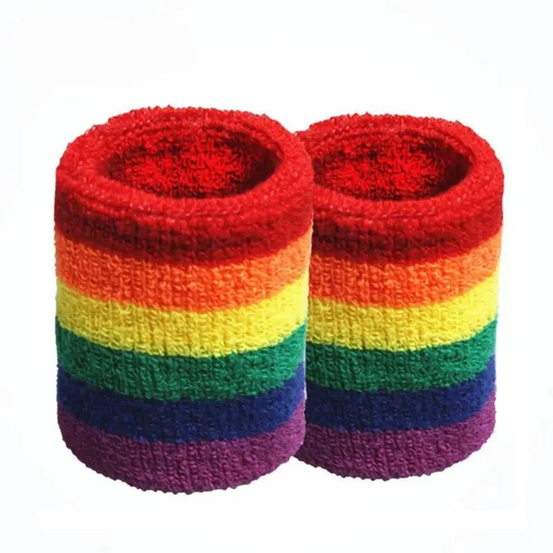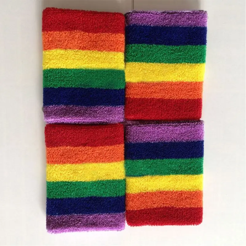 Женские и мужские спортивные ремешки на запястье полотенце повязка радужные разноцветные полосы дышащие нарукавники для бега и бадминтона
