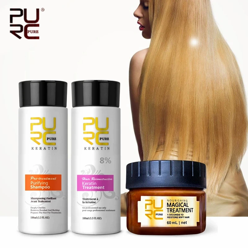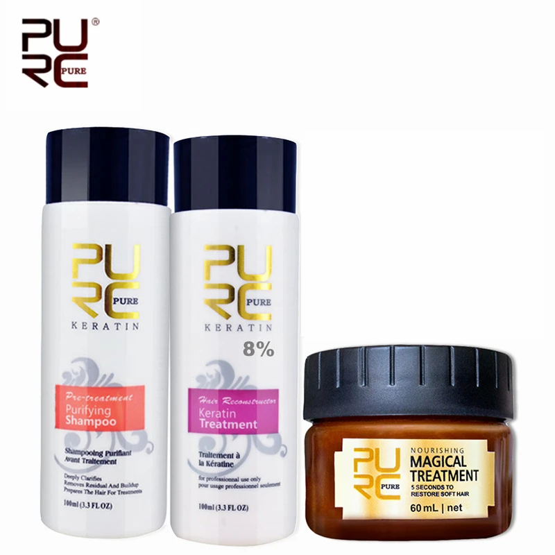 PURC 100 мл бразильская кератиновая обработка + 100 мл очищающий шампунь + 60 мл маска для волос выпрямление волос и восстановление поврежденных волос продукты