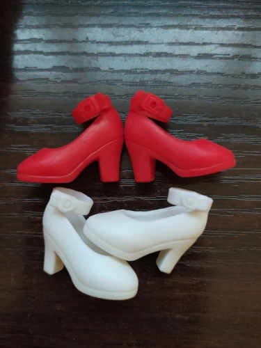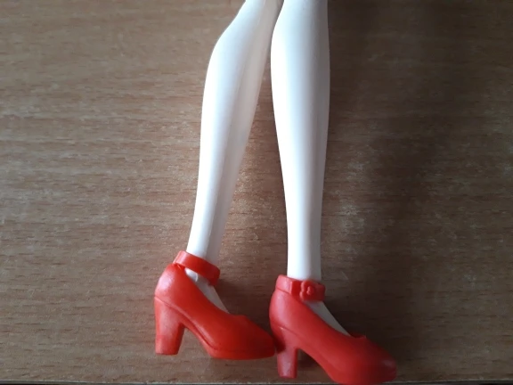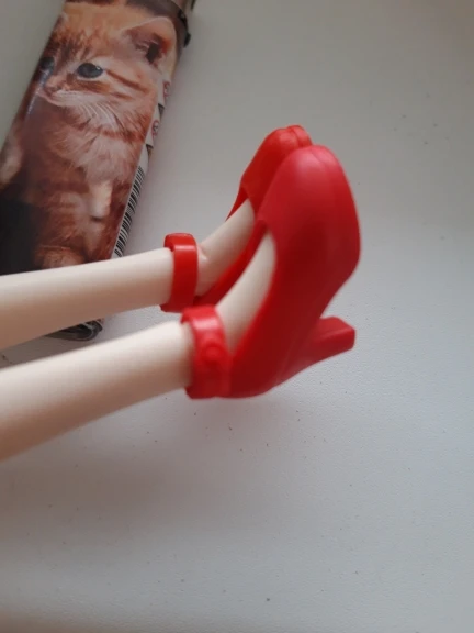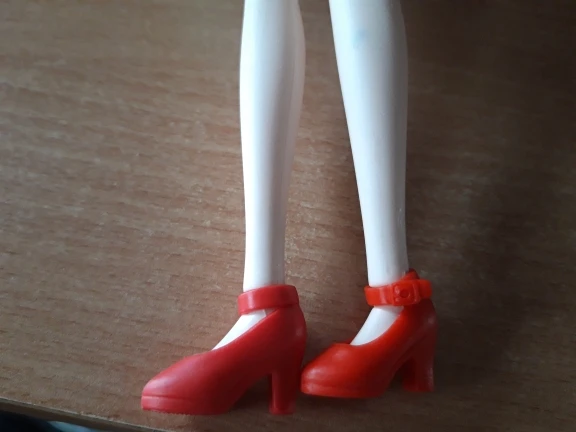 Прибыло в страну назначения довольно быстро за неделю, полторы, потом еще гуляло на таможне дней 10. Белые с ремешком в виде сердца, а красные квадратные. Красивые. Подойдут пышным и высоким барби. Для стандартных крупноваты.