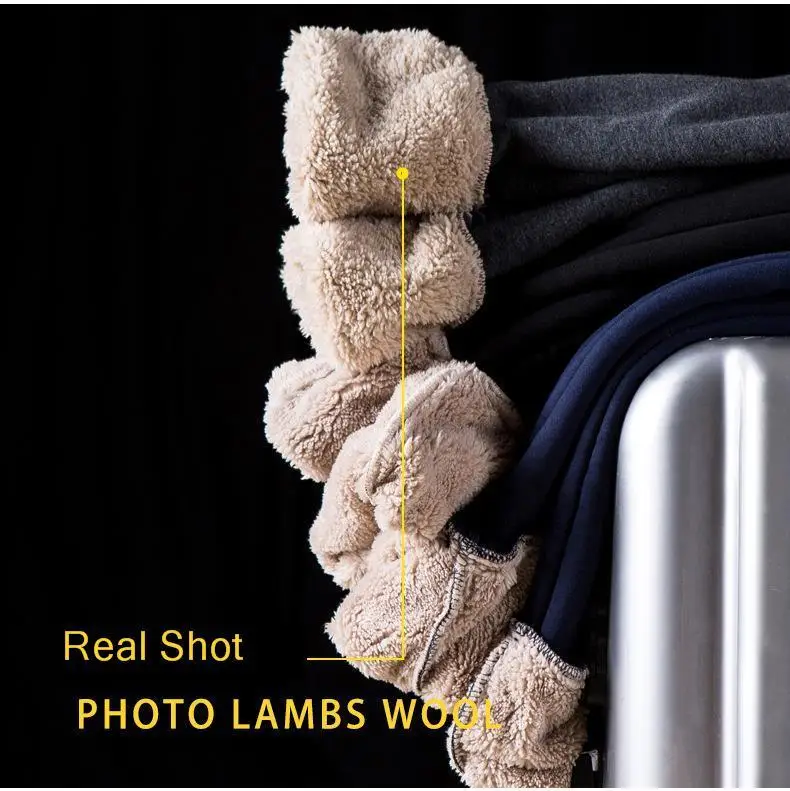 Брюки мужские зимние из овечьей шкуры, теплые облегающие, с бархатным утеплителем, повседневная одежда для мужчин и женщин