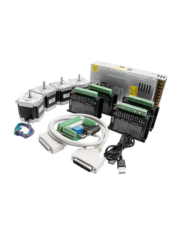 Шаговый двигатель nema23 56 мм 1,2 нм, 4 шт.Драйвер TB6600 4 шт.Блок питания 350w 24v 1 шт.1 шт. 5-осевая параллельная плата портаКабель DB25 1 шт.USB-кабель 1 шт.
