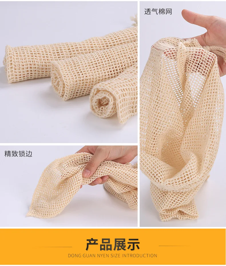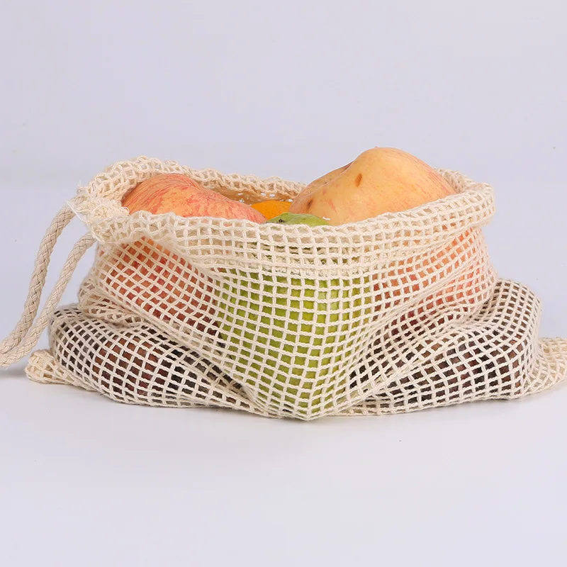 Мешки для овощей популярные хлопковые, многоразовые сетчатые мешки для хранения фруктов и овощей на шнурке для дома, 1 шт., можно стирать в стиральной машине