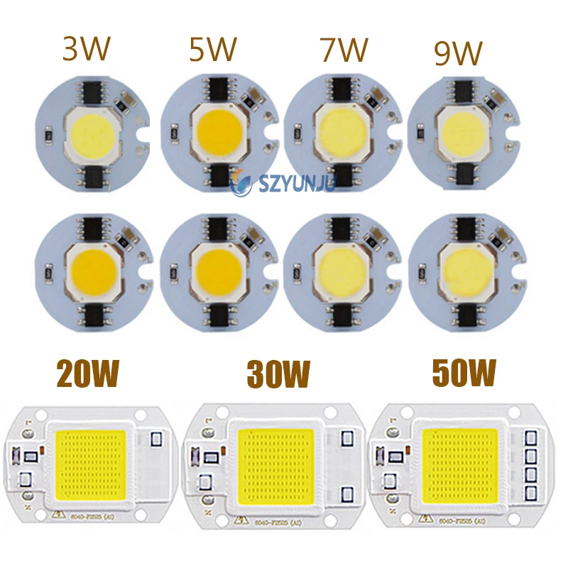 Светодиодный чип COB, 110 В, 220 В, 9 Вт, 10 Вт, 20 Вт, 30 Вт, 50 Вт