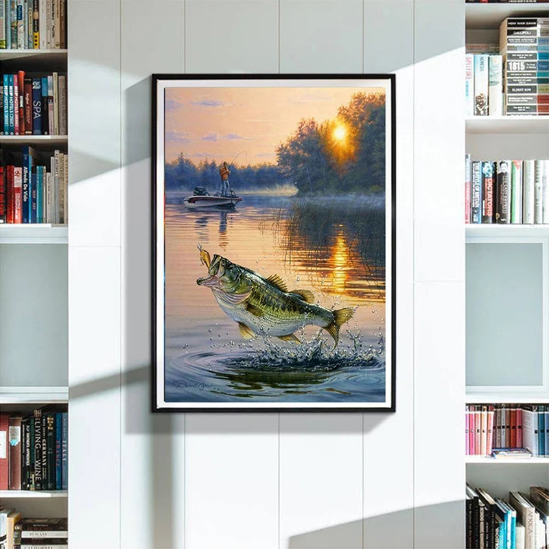 Алмазные мозаичные животные с квадратнымикруглыми сверлами, Декор, домашний пейзаж, 5D, алмазная вышивка сделай сам, картина для рыбалки