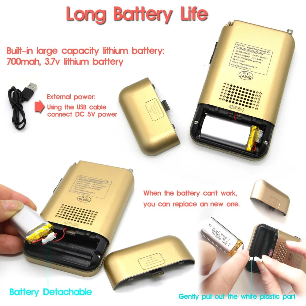 Радиоприемник VHF с двойным будильником, портативное радио с полным диапазоном, FM, AM, SW, VHF, CB 30-223 МГц, 25-28 МГц, 118-138 МГц