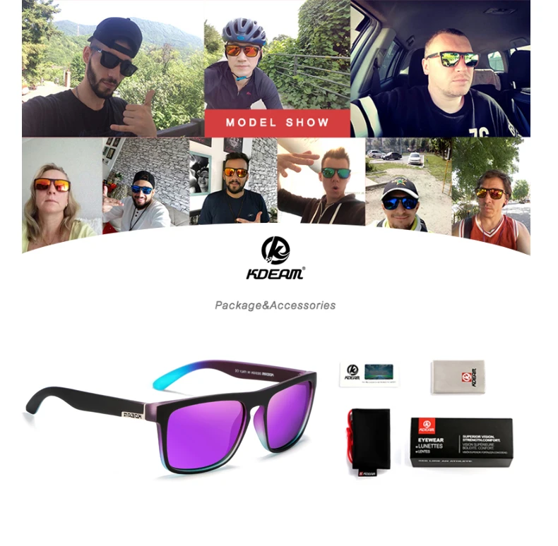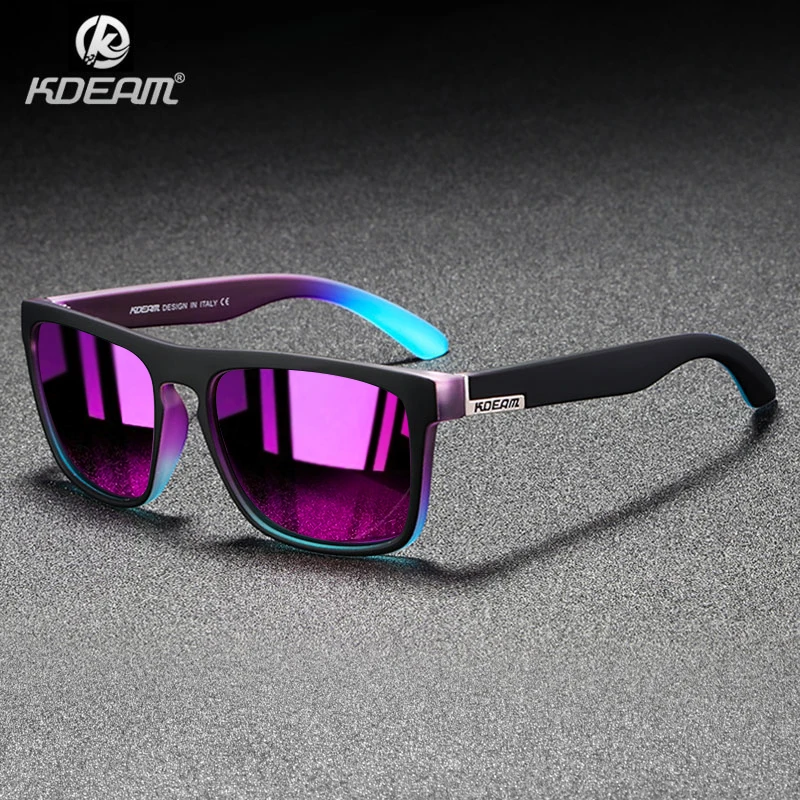 Солнцезащитные очки KDEAM KD129 мужские, модные квадратные поляризационные зеркальные солнечные очки с УФ-линзами, фиолетовые, красные, синие, 100% CE