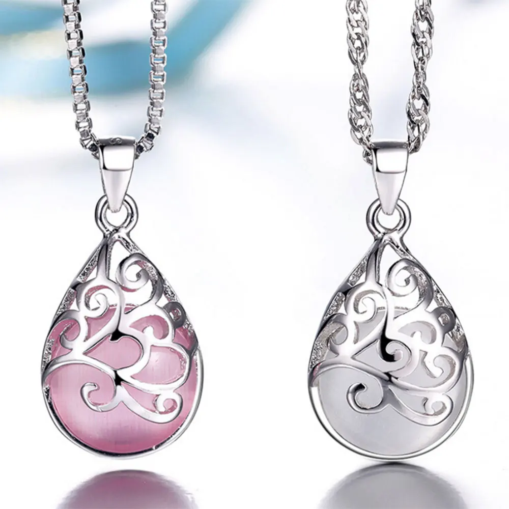Ожерелье женское из серебра 925 пробы с натуральным лунным камнем и опалом кошачий глаз
