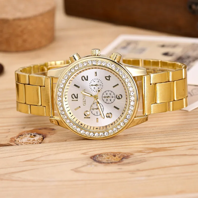 Простые Модные женские часы, Роскошные Кварцевые женские наручные часы из нержавеющей стали с кристаллами