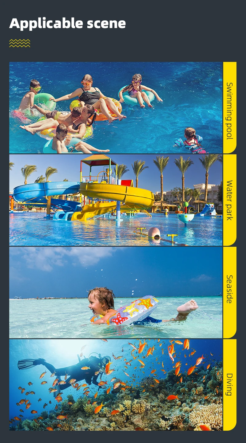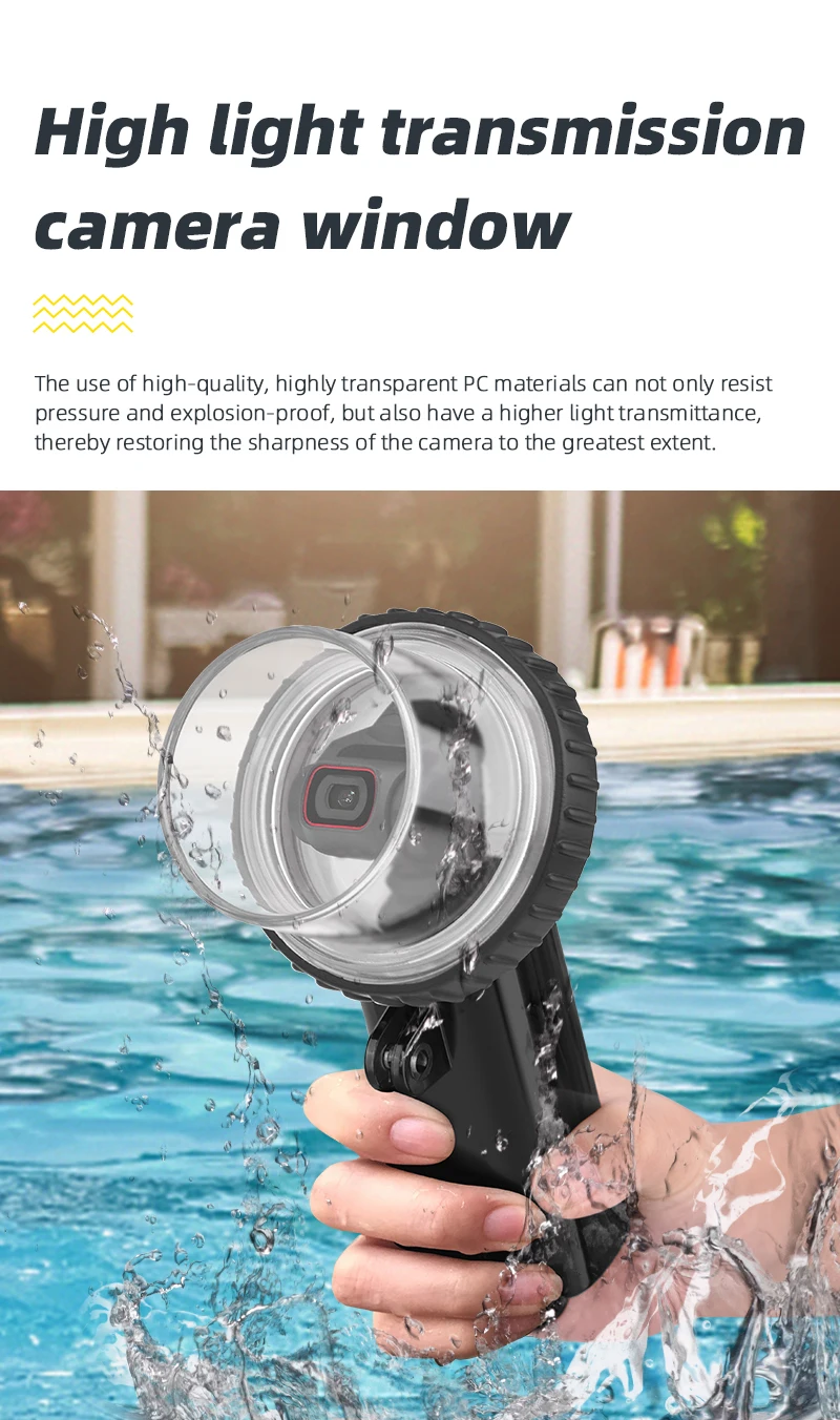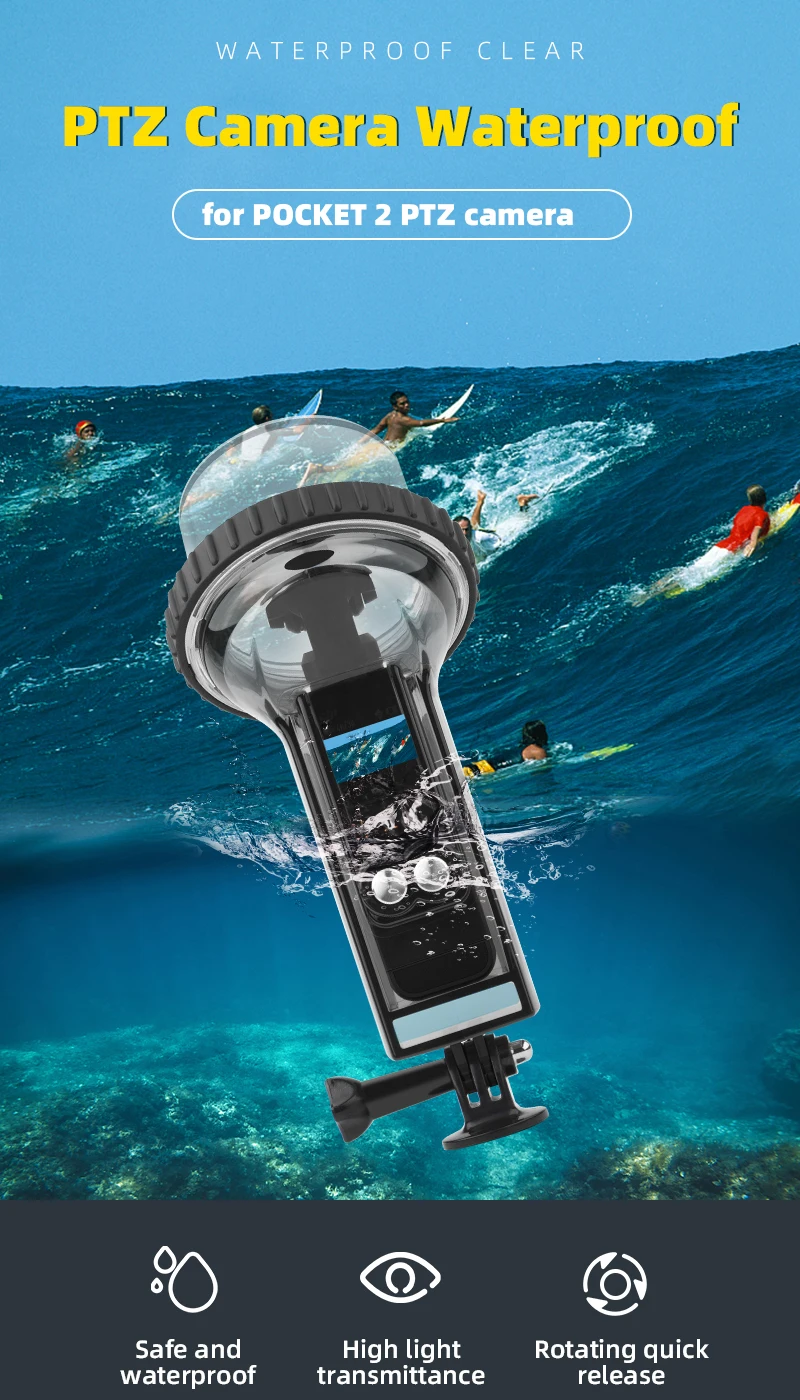 (Водонепроницаемый чехол) 1. Водонепроницаемый чехол водонепроницаем на глубине до 60 м, 2. Подходит для серфинга, нарезания кубиками, дождливых дней и т. д. 3. Коэффициент пропускания более 98%, 4. Две кнопки снаружи обеспечивают точное управление карманом Osmo, 5. Противотуманные линзы эффективно предотвращают запотевание чехла.