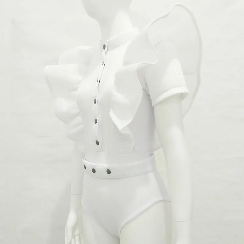 Женское боди с черными оборками, 2018, летние комбинезоны с вырезам...