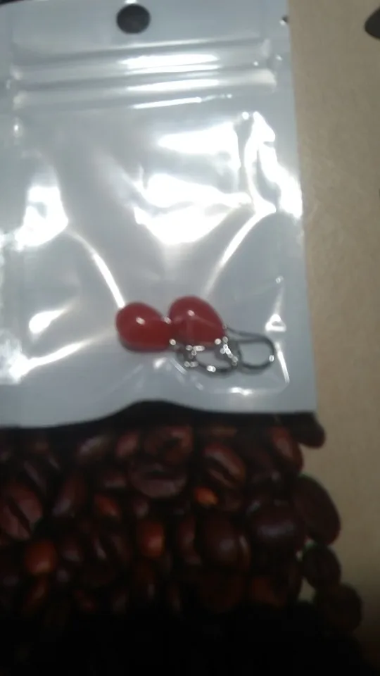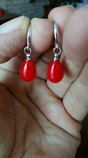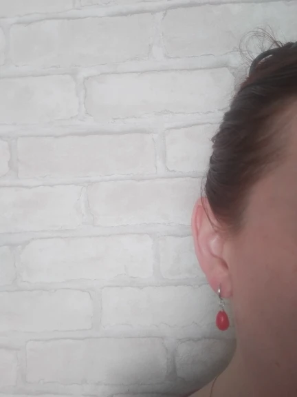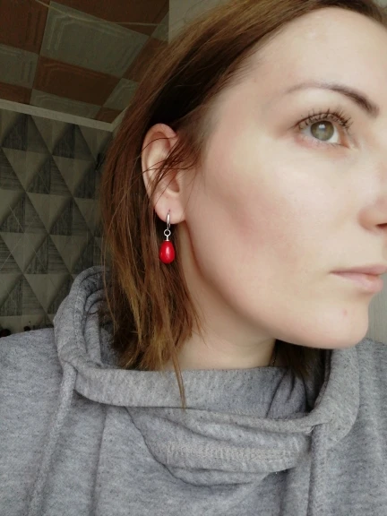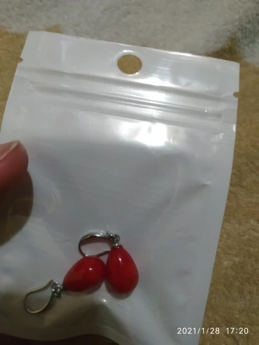 На фото смотрятся иначе. Похожи на коралл,коралловый красный. По факту ярко-красный пластик и это заметно. Некрупные,но форма капелька очень удачная