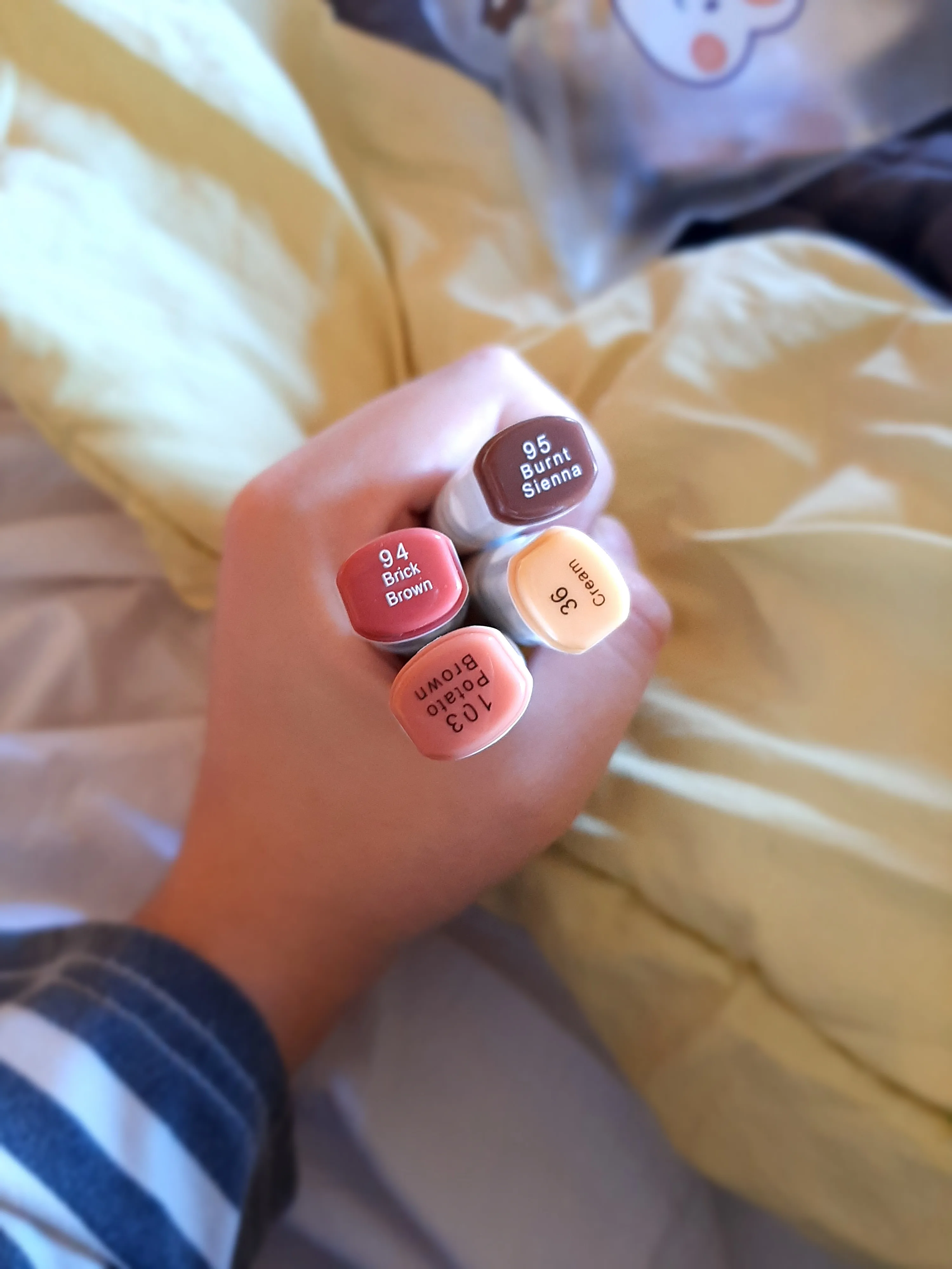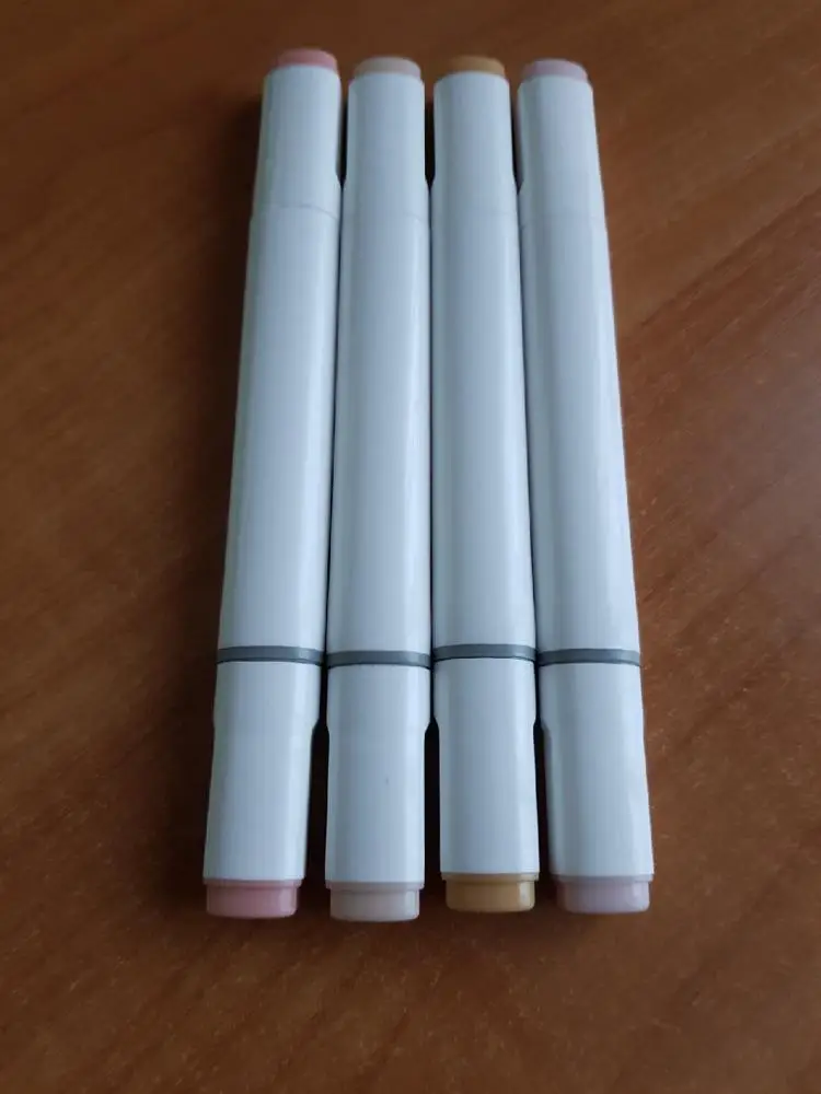 Пришло за полтора месяца в Краснодар. 132 оказался очень бледным, но для рисования полудохлых людей и вампиров отлично подойдет. А вот 29 идеальный цвет здоровой кожи. Маркеры хорошо смешиваются между собой, но на воду реагируют совсем плохо. Что мне нравится больше всего, ложатся ровно, а не как фломастеры. Спасибо огромное продавцу))