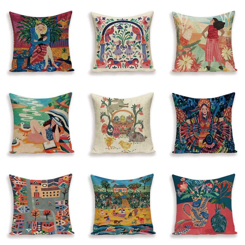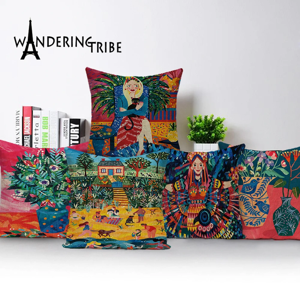 Богемные диванные подушки, Сельский декор, льняная Подушка 45*45, в...