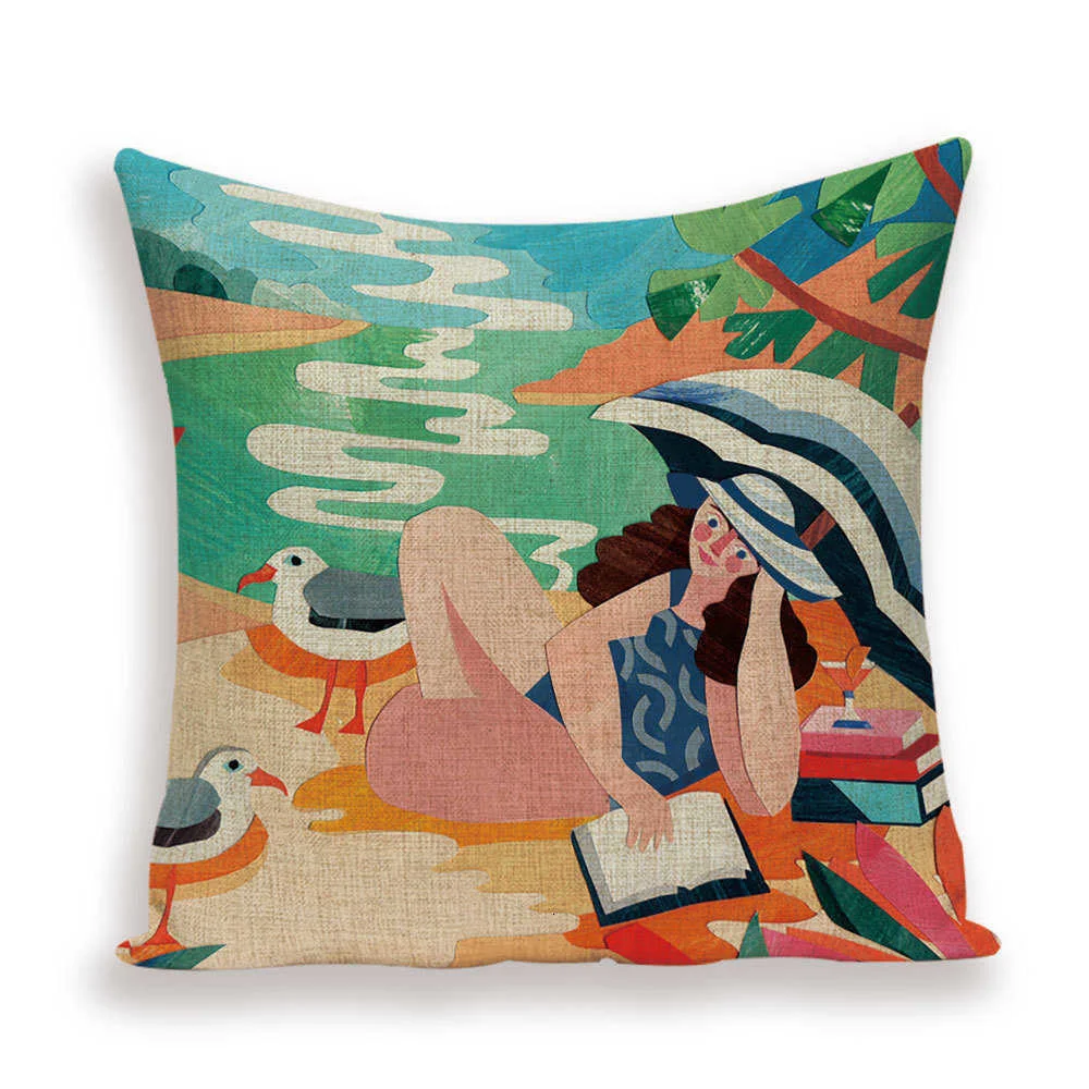 Наволочка для подушки с изображением Морского Пейзажа, чайки, домаш...