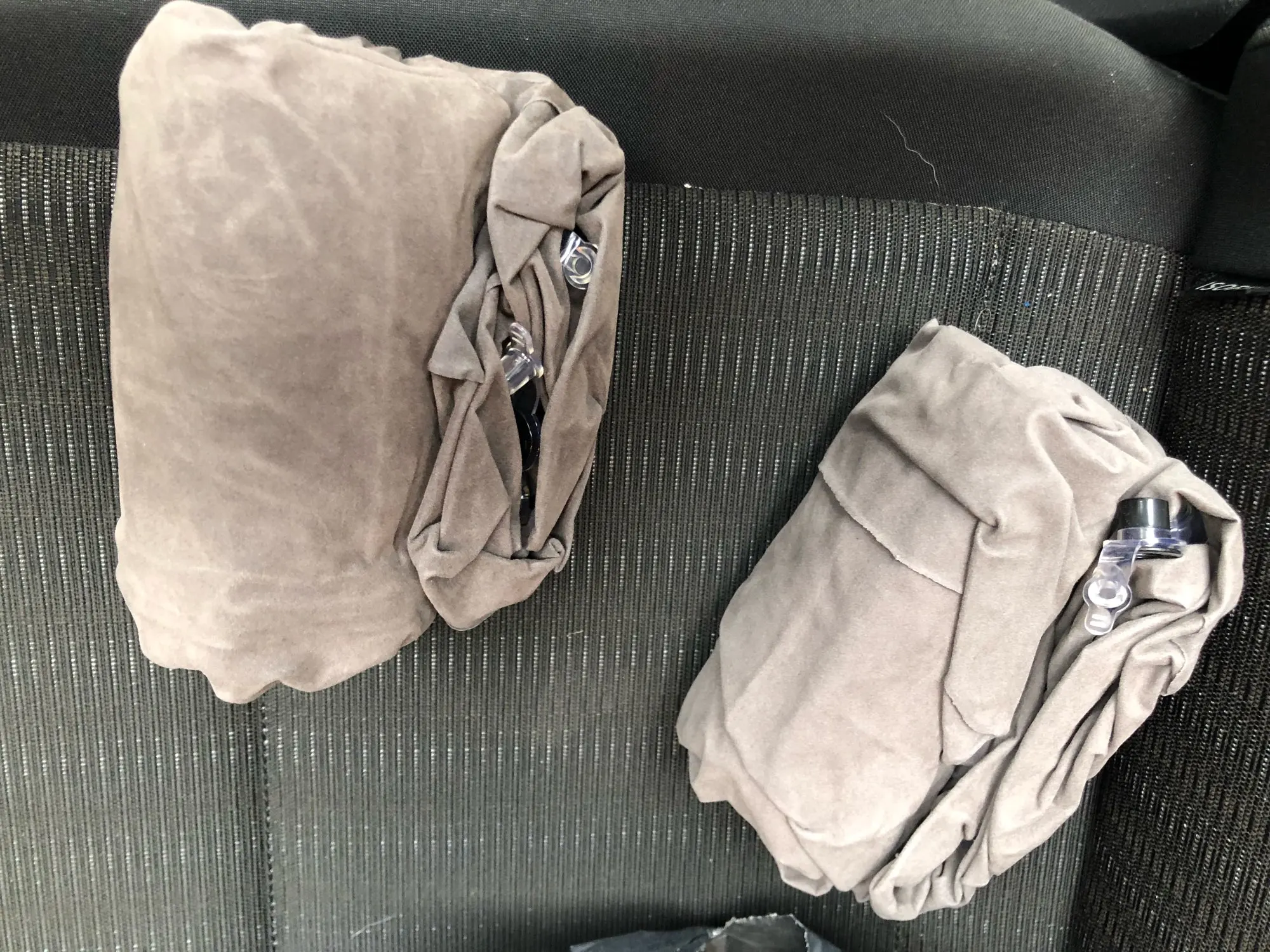 Заказ получен. Всё как в описании. Заказывал 2штуки, продавец смотал их скочтем, после снятия скотча остались липкие следы, видно на фото. Подушки имеют 2 клапана, удобно. Надул для проверки, поставил в машину, вроде все хорошо. Но поставил на пластиковый уголок, подушка порвалась ((( не крепкий материал. Да косяк мой, но всё равно, материал тонкий.
